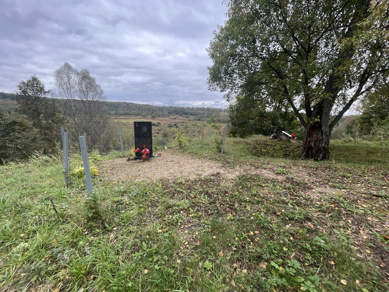 Первоначально был похоронен на месте последнего боя у деревни Жуково. Позднее перезахоронен в братскую могилу на площади города Духовщина Смоленской области.