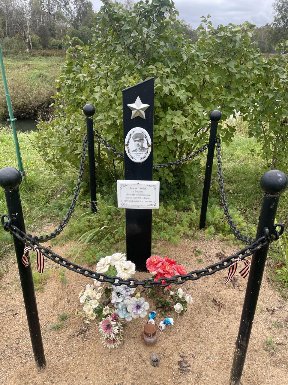 Предлагаю посетить памятный знак, почтить память погибшего в 17-летнем возрасте парня, у которого война забрала будущее. Самое ужасное, что погиб он, уже зная, что наша страна победила в Великой Отечественной войне. И все-таки война забрала его жизнь.