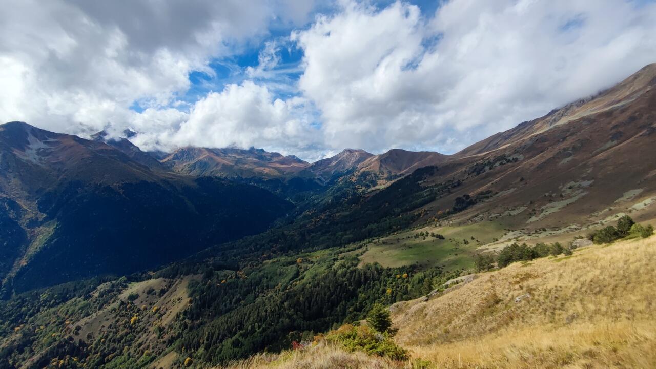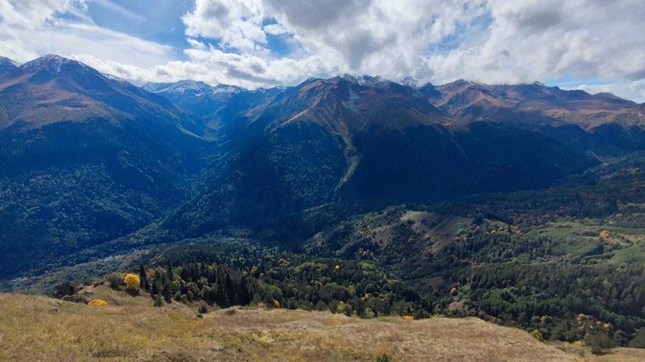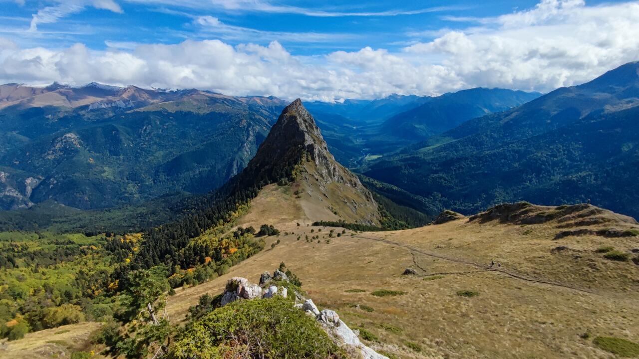 Если от ложбины под пиком подняться чуть выше на начало хребта (расстояние 500 м. по прямой, но с подъёмом примерно 200 м. по высоте) на видовую площадку, открывается умопомрачительный вид на все 360 градусов. В первую очередь - сам пик и долину Большой Лабы от Дамхурца до Пхии с долинами Макеры, Мамхурца и Дамхурца, на долину Имеретинского горного узла, перевалы Луганский и Умпырский, хребет Магишо, вершину горы Загедан. При хорошей погоде можно увидеть вершины Архыза и даже Домбая.