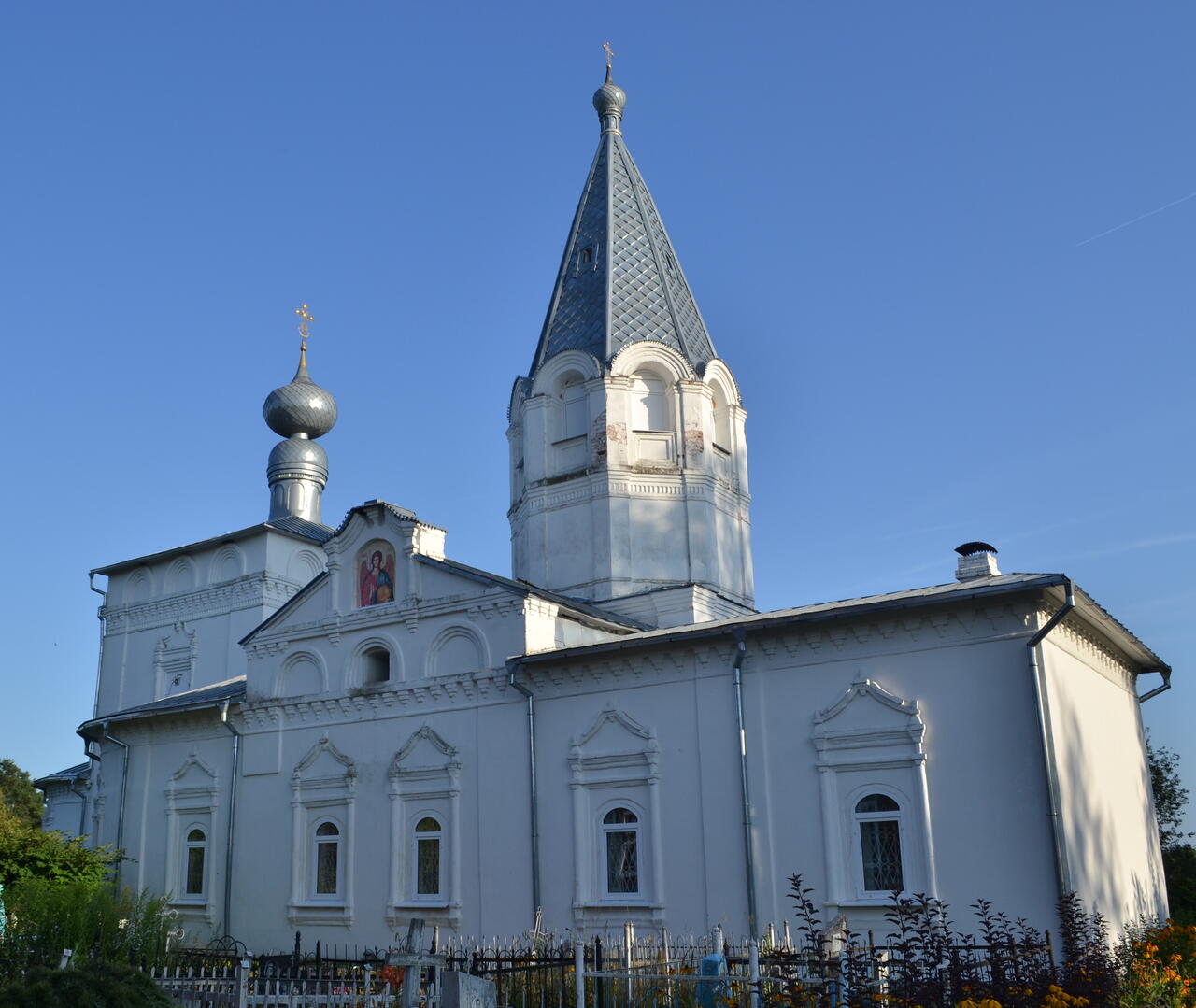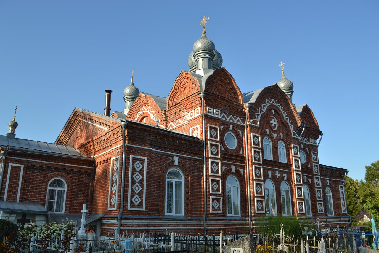 Новая церковь из красного кирпича в стиле эклектика была закончена в 1899 году. Отличительной чертой этого стиля является замена лепных украшений элементами из неоштукатуренного кирпича. Обратите внимание на богато декорированный основной объем обители - двухэтажный четверик, увенчанный пятью главами с луковичными куполами, с расширениями по бокам и апсидой с восточной стороны. Буквально каждый квадратный метр его фасадов, в том числе завершения в виде трех кокошников, усеяны различными фигурными украшениями, для контраста выделенных белым цветом, которые характерны для русского стиля архитектуры - искусные архивольты, рельефные фризы и наличники с веерными замками.