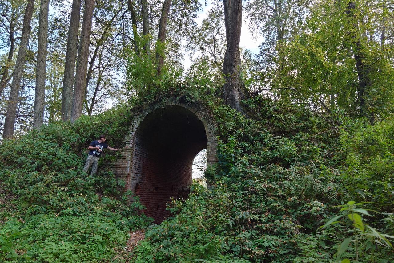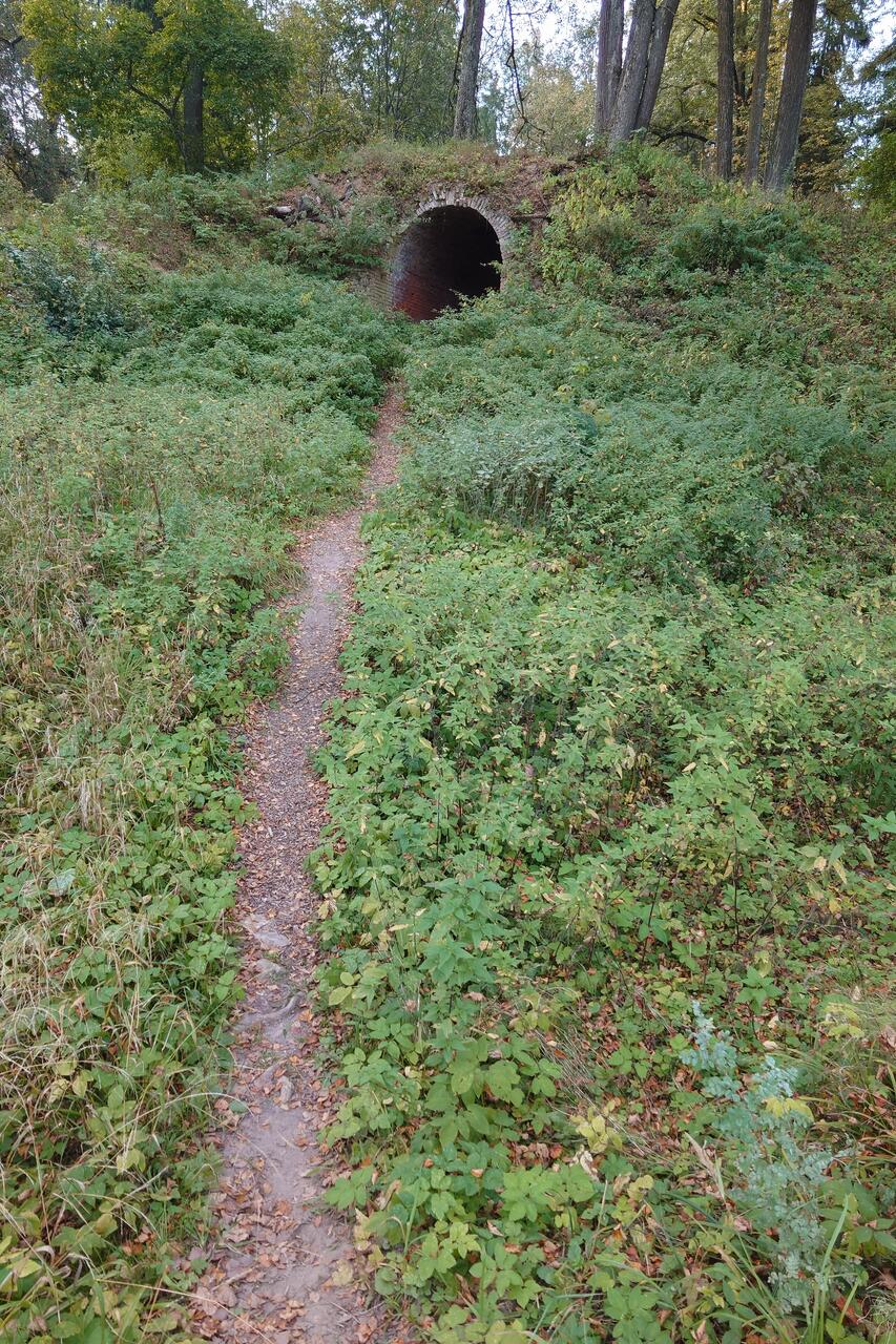 В парке были выкопаны небольшие пруды с островом посередине. На карте это называется капельный ров – действительно, можно разглядеть форму капли на местности. Жаль, ров сейчас сухой, а местные выкидывают в него всякое.