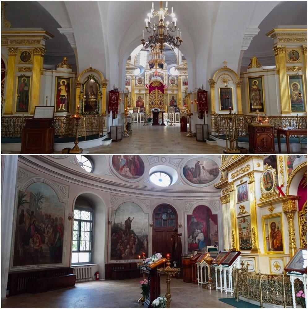 Трапезная (между колокольней и ротондой), как мы уже упомянули выше, имеет два престола – Николая Чудотворца и пророка Божия Моисея.