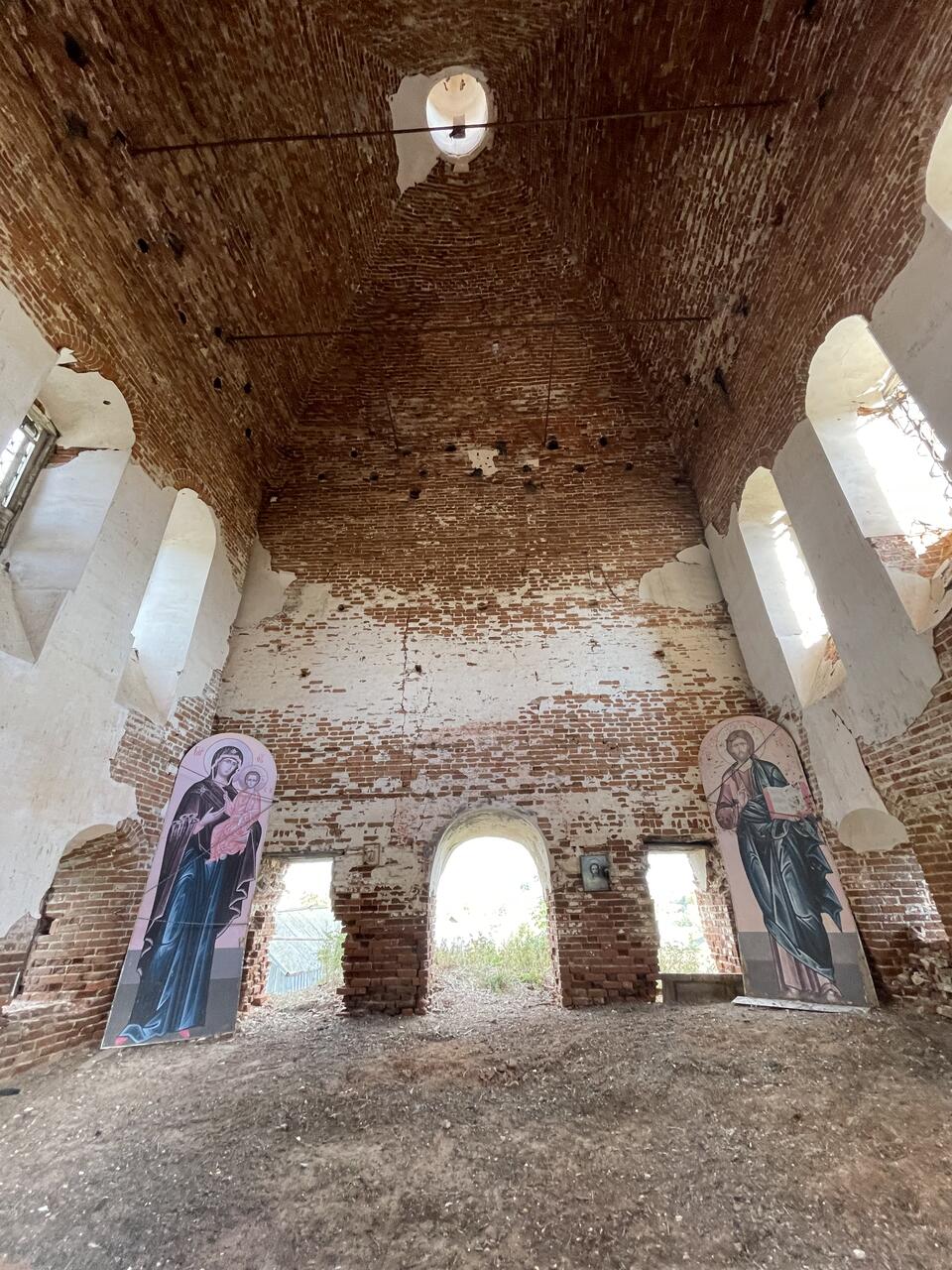 В начале XX в. основное здание с пятью декоративными глухими главами и старая часть трапезной были обшиты кровельным железом, очевидно в целях экономии, чтобы не восстанавливать сложные кирпичные детали.