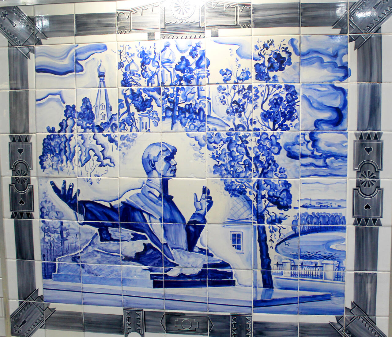 Юрий Бритеньков, житель г. Рязани: «Эти панно делал мой отец, бригада плиточников, еще в 82 или 83 году. Это плитка, уже были изготовлены панно, они просто облицовку сделали и все... ».