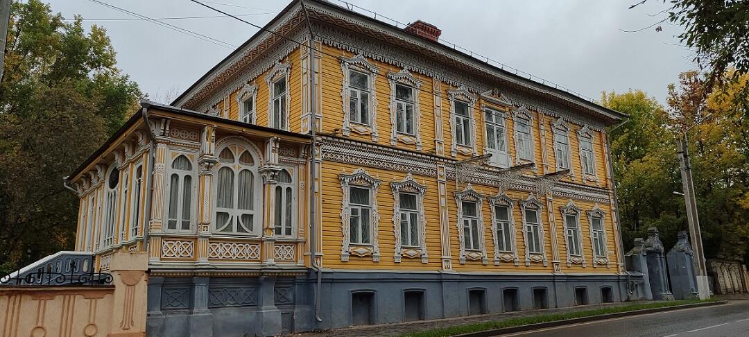 Вы перед собой видите нарядный деревянный дом, который он построил для своей дочери Александры, вышедшей замуж за инженера Николая Ивановича Лосева. Особняк является образцом гражданского зодчества XIX века. Деревянный, рубленый из бревен и обшитый тесом, дом имеет отделку в «русском» стиле с заметным влиянием модерна. Влияние нового стиля особенно заметно в оформлении оконных переплетов веранды с цветными стеклами. Здание украшено изящной резьбой, ажурной оградой над карнизом и большим балконом с легкой решеткой.