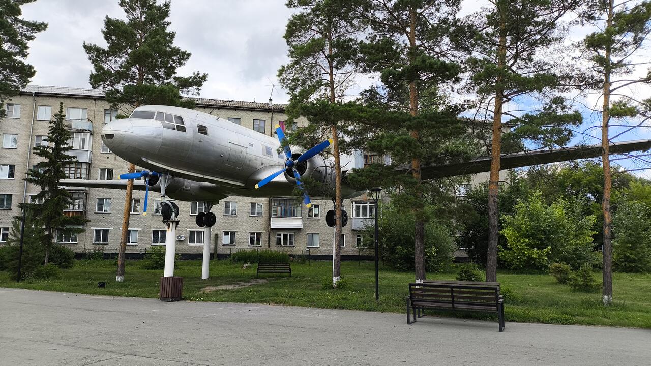 Недалеко среди стволов сосен нависает настоящий самолёт Ил-14! Он появился в Куйбышеве в 1986 году. Это транспортный самолёт, выпущенный в 1956-м на московском заводе «Знамя труда». После списания его решили сохранить как памятник, и в первые годы он даже использовался необычным образом — внутри работало детское кафе «Илюша». Со временем машина обветшала, и её перенесли в Сквер Воинской Славы, где начались работы по восстановлению. Сегодня Ил-14 стал не просто памятником, а напоминанием о том, как авиация и труд простых людей помогали стране в мирное и военное время.