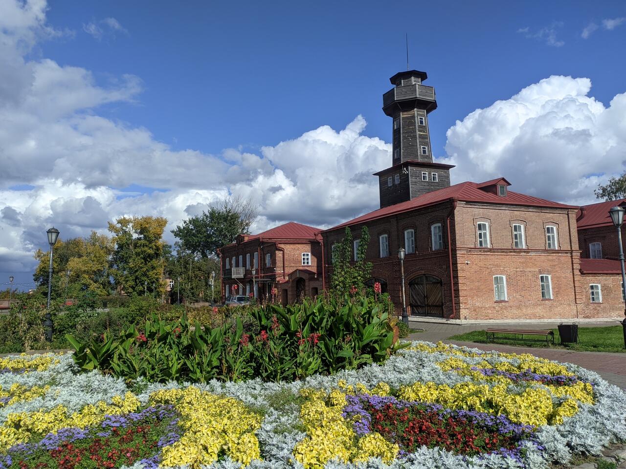 Рядом с каланчой расположены здания низшей ремесленной школы и пожарного обоза. Строился ансамбль в два этапа: в 1870-е годы и в начале XX века. В 1892 году в одном из двухэтажных каменных домов размещались городская управа и мужское приходское училище, а с 1900 года- библиотека. В середине XIX века была возведена пожарная каланча, позже она была разрушена. Каланча была воссоздана в 2015 году по сохранившимся рисункам и эскизам.