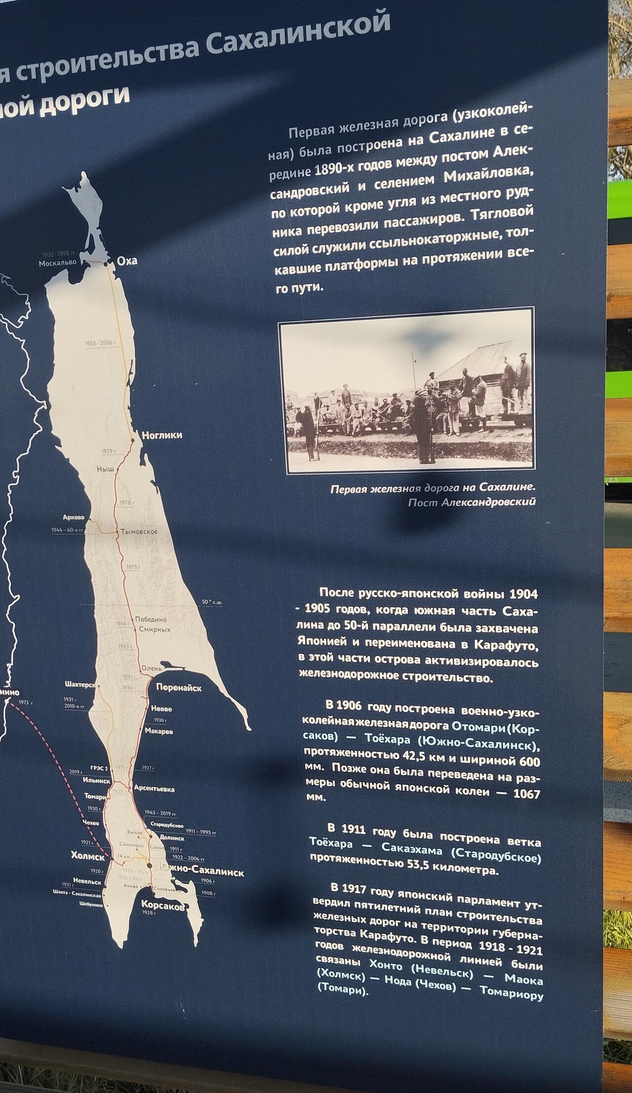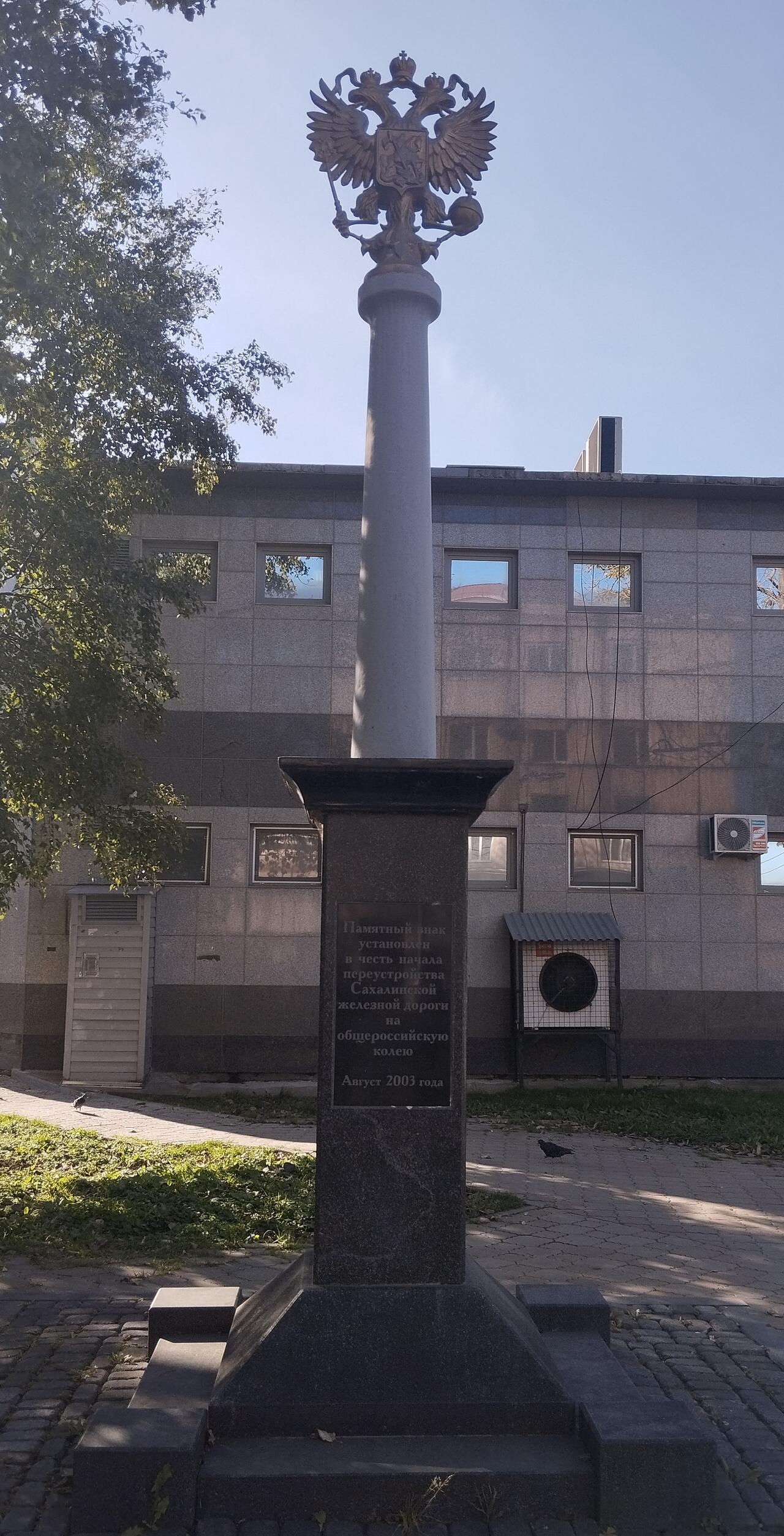 По координатам N 46 57.482 E 142 43.608 расположен комплекс стендов с указанием годов постепенного перехода с японской колеи 1067 мм на общероссийскую колею 1520 мм. Здесь же установлены образцы колесных пар на рельсах японской колеи и общероссийской колеи.