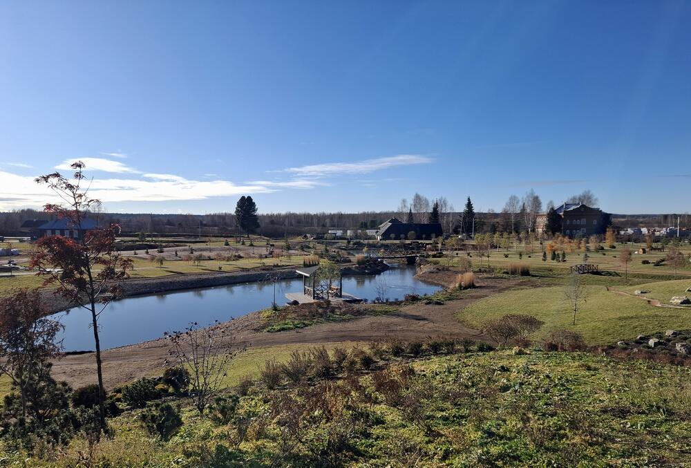 Парк выполнен в пейзажном стиле. Его отличает гармоничное вписывание в существующие ландшафты: почти незаметны границы рукотворного и природного, границы парка буквально «растворяются» среди холмов и берёз его окружения. Используются, так называемые, «заимствованные пейзажи», пришедшие в европейское ландшафтное искусство из японских садов эпохи Эдо.