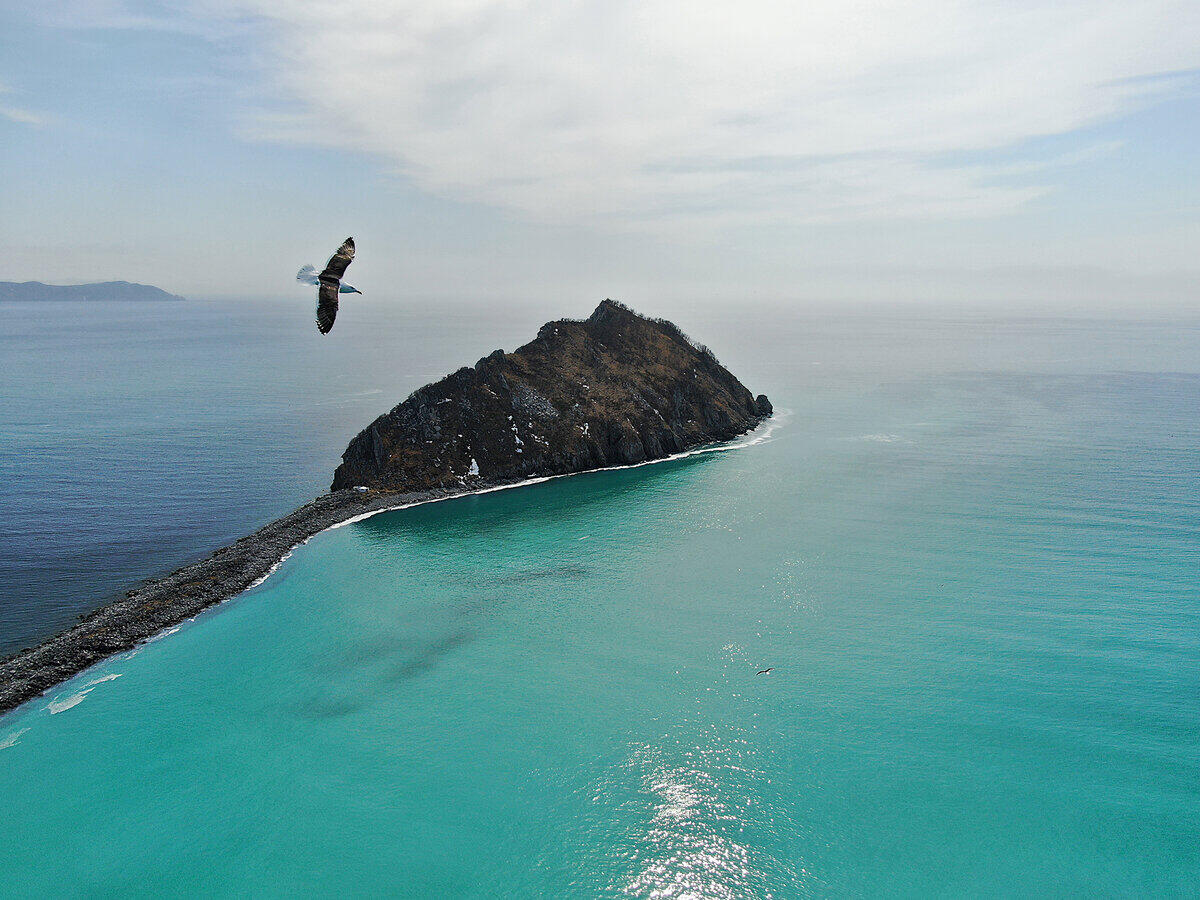 Весной на Островном получаются самые красочные фотографии. На прибрежных склонах только-только сходит снег и на полянах зацветают фиолетовые прострелы. А в мае к берегу подходит сельдь на нерест, создавая необычное зрелище: вода бухты окрашивается в ярко-бирюзовый цвет благодаря молокам, которые выпускают самцы рыбы.
