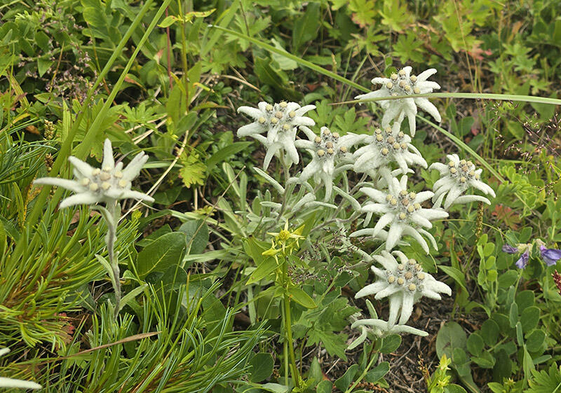 Летом здесь зацветают редкие горные эдельвейсы, занесённые в Красную книгу.