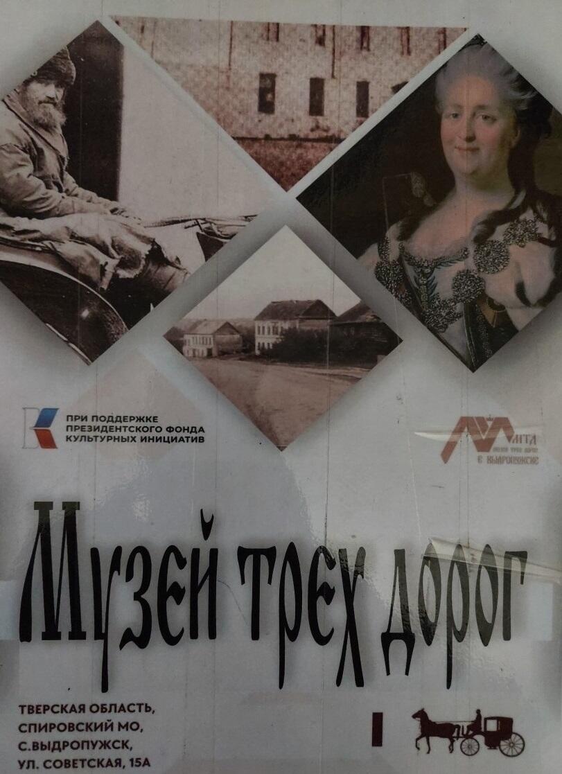 Музей рассказывает об одном из древнейших сёл Тверского края, расположенном на живописных берегах Тверцы и имеющем необычное название - Выдропужск. Здание музея находится на историческом месте села. Здесь в 1788 году по Указу Екатерины Великой был возведён двухэтажный каменный императорский путевой дворец – один из одиннадцати путевых дворцов, построенных на Государевом тракте для отдыха путешествующих монарших особ. Своё название музей получил благодаря дорогам, пересекавшим Выдропужск в разные исторические эпохи и оказавшим влияние на развитие села: Новгородский тракт, Государева дорога и Волоковый путь – река Тверца, когда-то водный торговый путь. Музей трёх дорог - это народный музей. В его создании и деятельности принимают участие местные жители. Выдропужцы делятся воспоминаниями, приносят старинные вещи, фотографии, документы из семейных архивов, археологические находки. Таким образом, музейная коллекция постоянно пополняется.