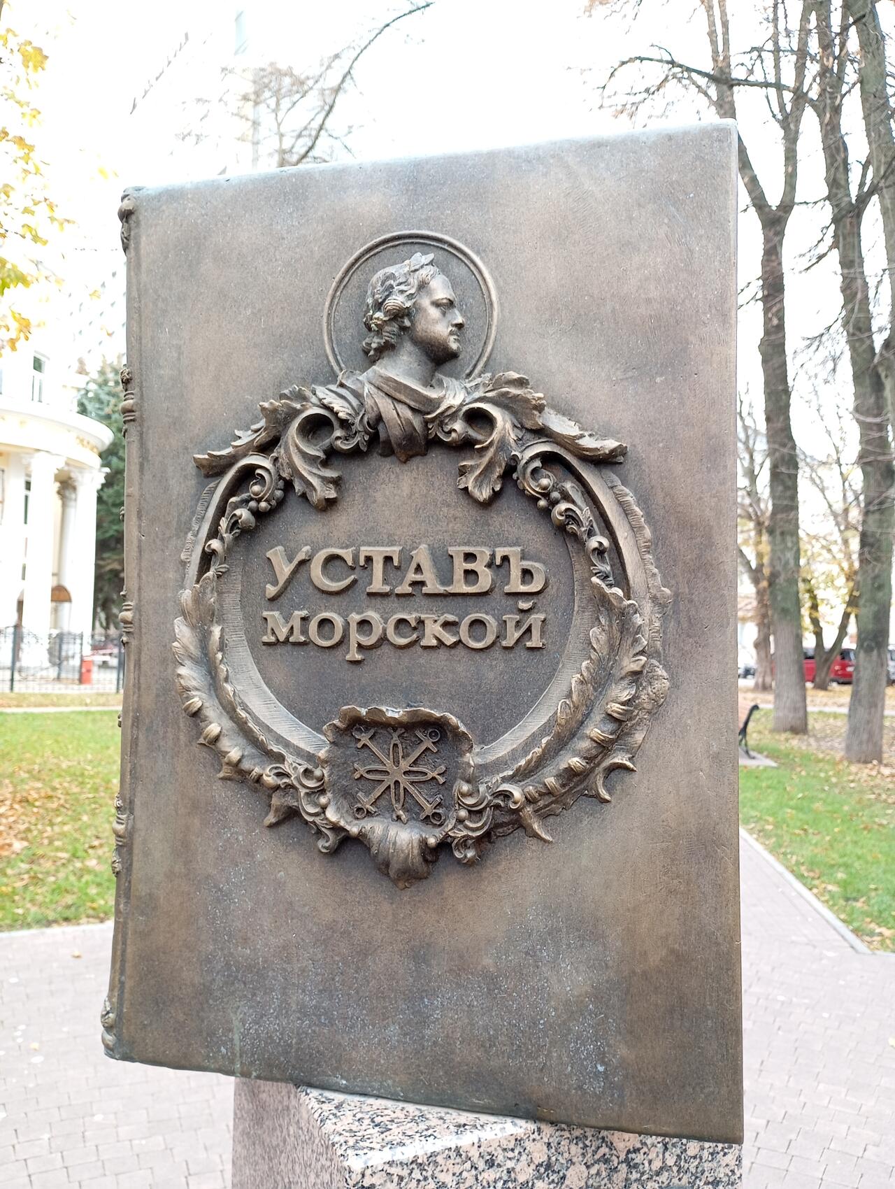 Торжественное открытие арт-объекта «Морской устав» состоялось 22 декабря 2023 года в Бунинском сквере. Автор творения — воронежский скульптор Виталий Локотков. В основе композиции лежит книга — «Устав морской: о всем, что касается доброму управлению в бытности флота на море», который заменил множество разрозненных документов, регулировавших различные аспекты флотской жизни. Но эта книга не простая: внутри неё, словно в проломе времени, расположены фигуры Петра Первого и его сподвижника — Федора Матвеевича Апраксина, первого адмиралтейца.