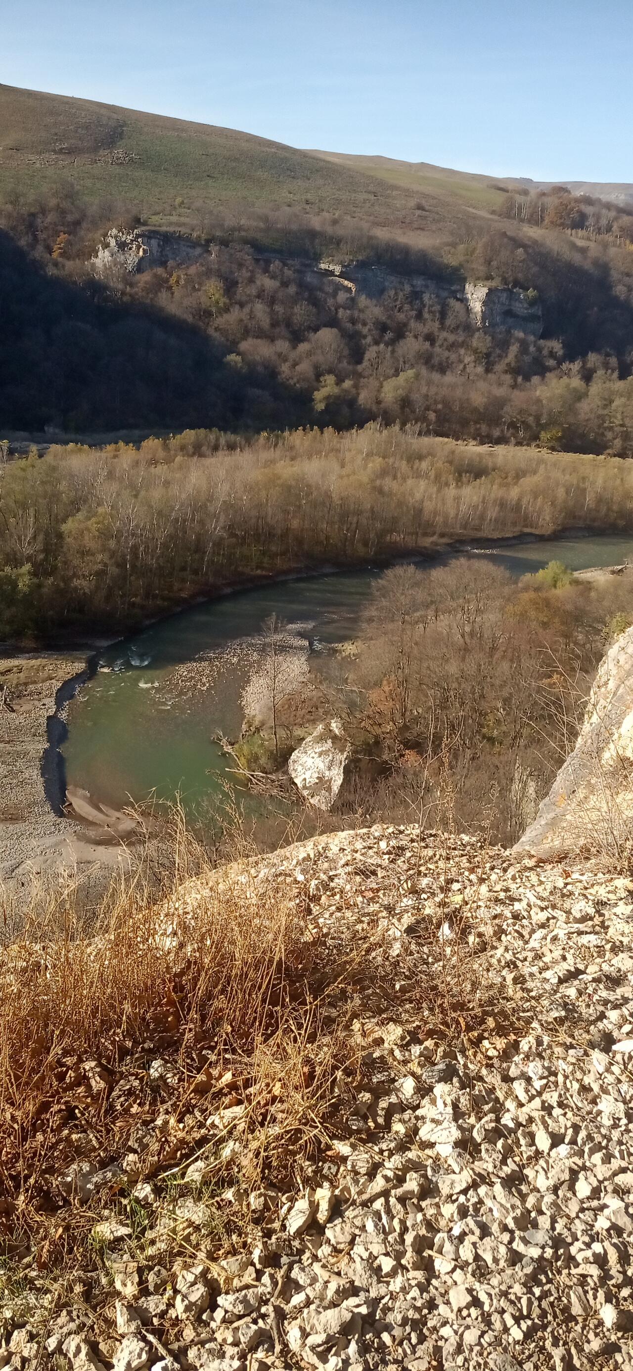 Хутор Ильич привлекает туристов своими разнообразными красотами. Это два красивых ущелья рек Уруп и Кува, плато между ними с таинственным городищем, пещеры и видовые обзорные точки. Традиционно, посещают эти места трехдневным походом, чтобы дойти до Баранахи и полазить по пещере Гамовской. Но можно и однодневными вылазками изучать местность. На всем протяжении похода вас будут поджидать тайники на знаковых местах, а вот часть маршрута вдоль Урупа оказалась неохвачена геокешерами. Это несправедливо, ведь обзорные площадки на Урупе шикарны. На мой взгляд, полочки у гротов, с видами на реку грандиозней, чем Орлиная полка в Мезмае. А народу здесь мало, по сравнению с тем же Мезмаем и можно вполне себе уединенно помедитировать. Прогулка по верхней части плато мне чем-то напомнила крымский Мангуп. Древние развалины былого города, защищенные со всех сторон отвесными обрывами. Только масштабы в разы больше.