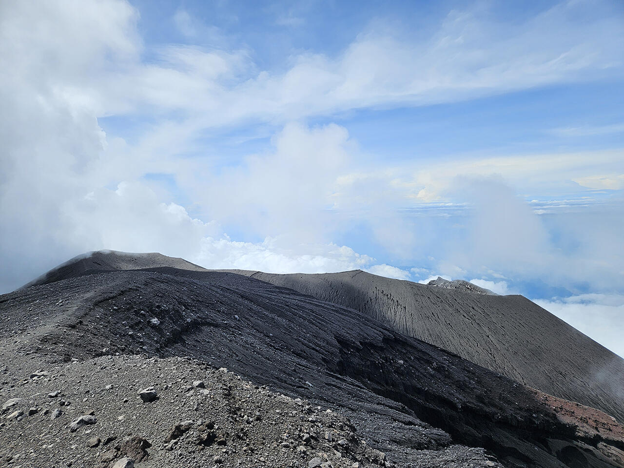 До выхода из зоны леса я поднимался по уверенной тропе, а дальше начался размытый ручьями безжизненный конус из чёрной каменистой вулканической породы, на котором не осталось даже признаков тропы, отмеченной на карте. Вообще, в сухой сезон на Семеру ежедневно поднимаются сотни человек, и наверняка они натаптывают хорошую тропу до самой вершины, но к моменту моего посещения прошли месяцы дождливого сезона без посетителей, и потоки дождевой воды успели полностью уничтожить тропу. Перед самой вершиной эрозия создала настолько серьёзные овраги, что я был вынужден тщательно выбирать путь и взбираться по этим ненадёжным размытым овражистым кручам с большой осторожностью. К счастью, это был совсем небольшой участок, за которым последовала непосредственно вершина. «Крыша» Явы!