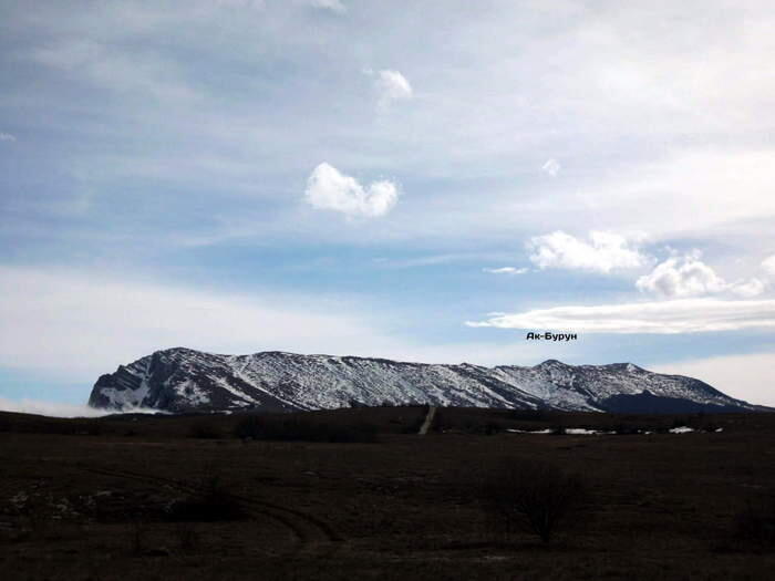 Но есть там еще три вершины, две из которых не имеют собственного названия, а только высоту, а вот третья «носит» имя Ак-Бурун (Белый мыс). Почему «Белый» ? «-Патамушта!» :)). Может, потому, что зимой Ак-Бурун, засыпанный снегом выглядит как огромный сугроб?