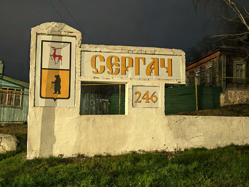 Сергач - город в Нижегородской области. Образован в 1779 году. 23 тыс. жителей. Станция на 526 км линии Москва - Казань в 237 км от Мурома и 235 км от Горького-Московского.