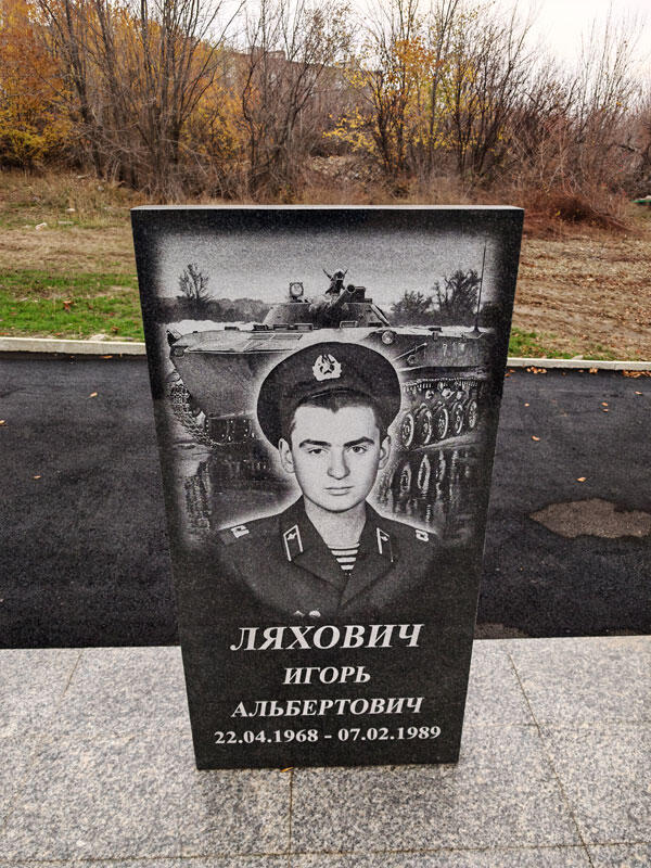 – Сначала оформили выделенную землю с разрешения администрации города на имя одного из нашей группы, заплатить пришлось и за участок, и за план – рассказывает Иван. – Место, конечно, не случайное – почти рядом с домом, где жил погибший в Афганистане десантник Игорь Ляхович. Этот памятник и в его честь тоже. Все стройматериалы и памятник закуплены на наши личные средства. Уже потратили около 250 тыс. руб. Кто-то из группы помогает делу финансово, кто-то физически. Решили, пусть это будет для города. Вид памятного знака тоже определяли сообща.