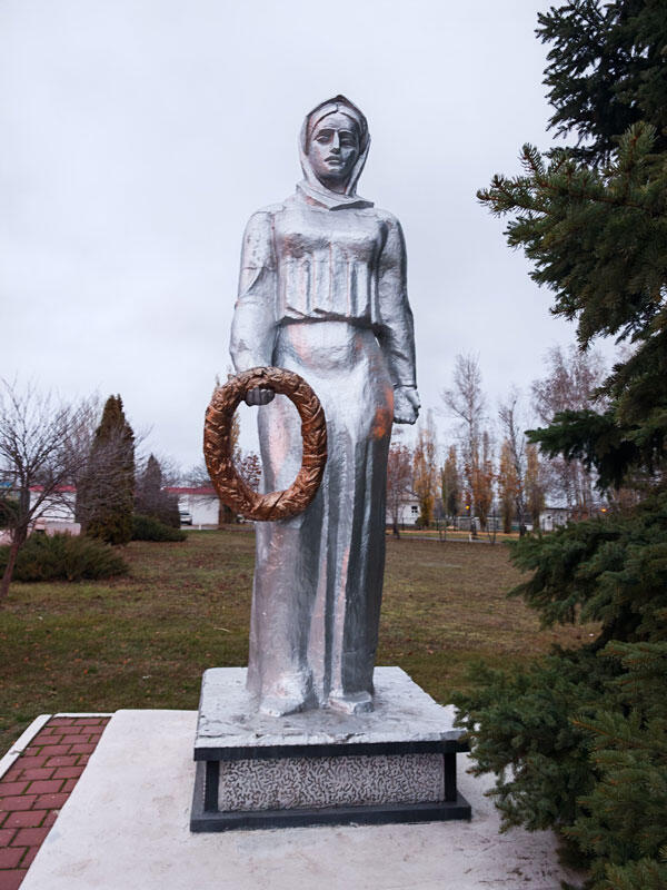Скульптура "Скорбящая мать" символизирует боль всех женщин, потерявших своих детей на войне.