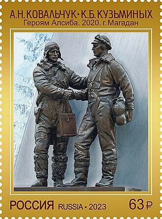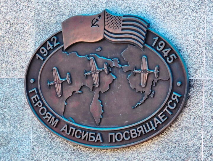 Мемориал «Героям АлСиба» посвящен подвигу и увековечивает историю сотрудничества СССР и США, изображая момент рукопожатия советского и американского летчиков на фоне вертикально установленного крыла самолета.