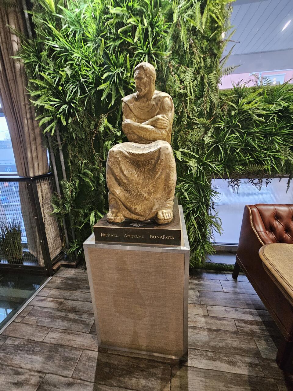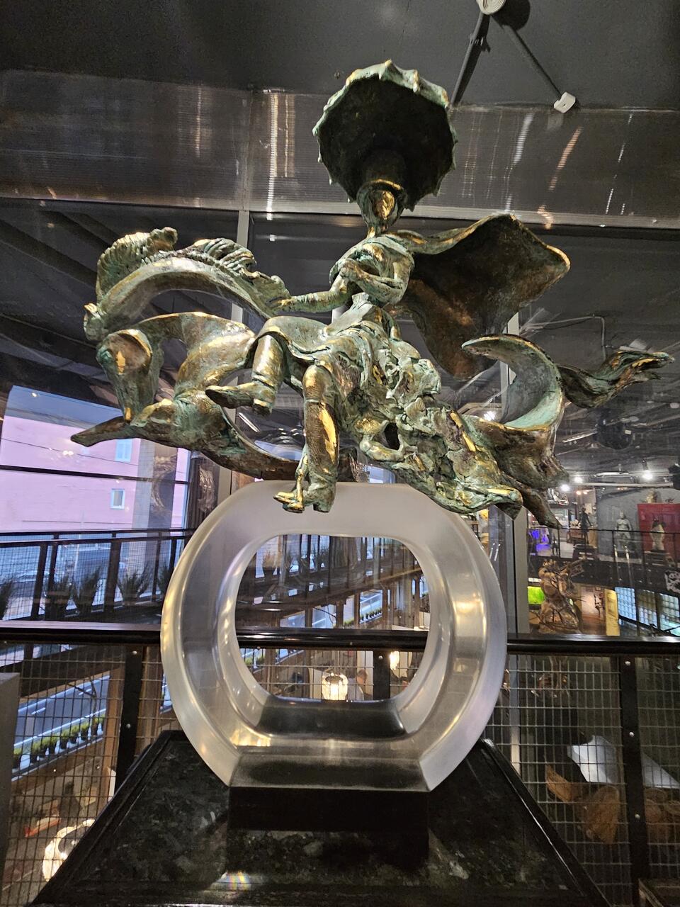 В самом зале тоже есть скульптуры. Но туда я не пошла, ибо трапезничать в ресторане в мои планы не входило, да и прикид у меня был простой, прогулочный, а никак не ресторанный. Да и на втором, выставочном этаже мне впечатлений хватило, так что вниз просто с балкона проглядела.