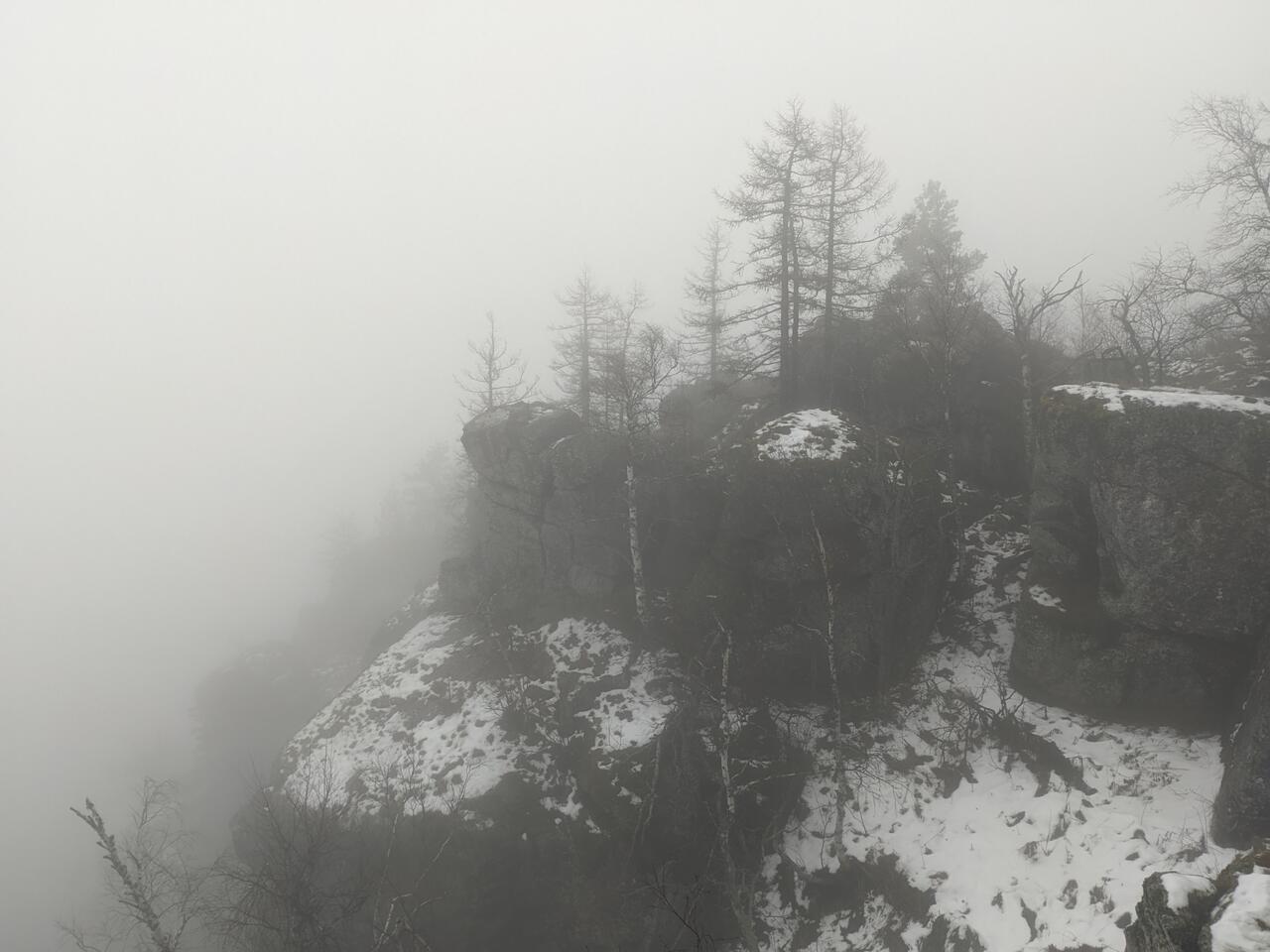 Виды со смотровой открываются... Эх, остаётся только фантазировать, какие они - виды с этой смотровой ) Должно быть видно и лагерь "Горное ущелье", и Куропатку, и ГЛЦ, и Каран-Ялык, и кусочек Банного и другие озёра и горы, и наверное, где-то на горизонте - дымы Магнитогорска и его трубы. От нас вся эта красота была скрыта - то ли туманом, то ли низким облаком, зацепившимся за хребет Крыкты. Зато нам достался туманный, сказочно-загадочный осенний лес.