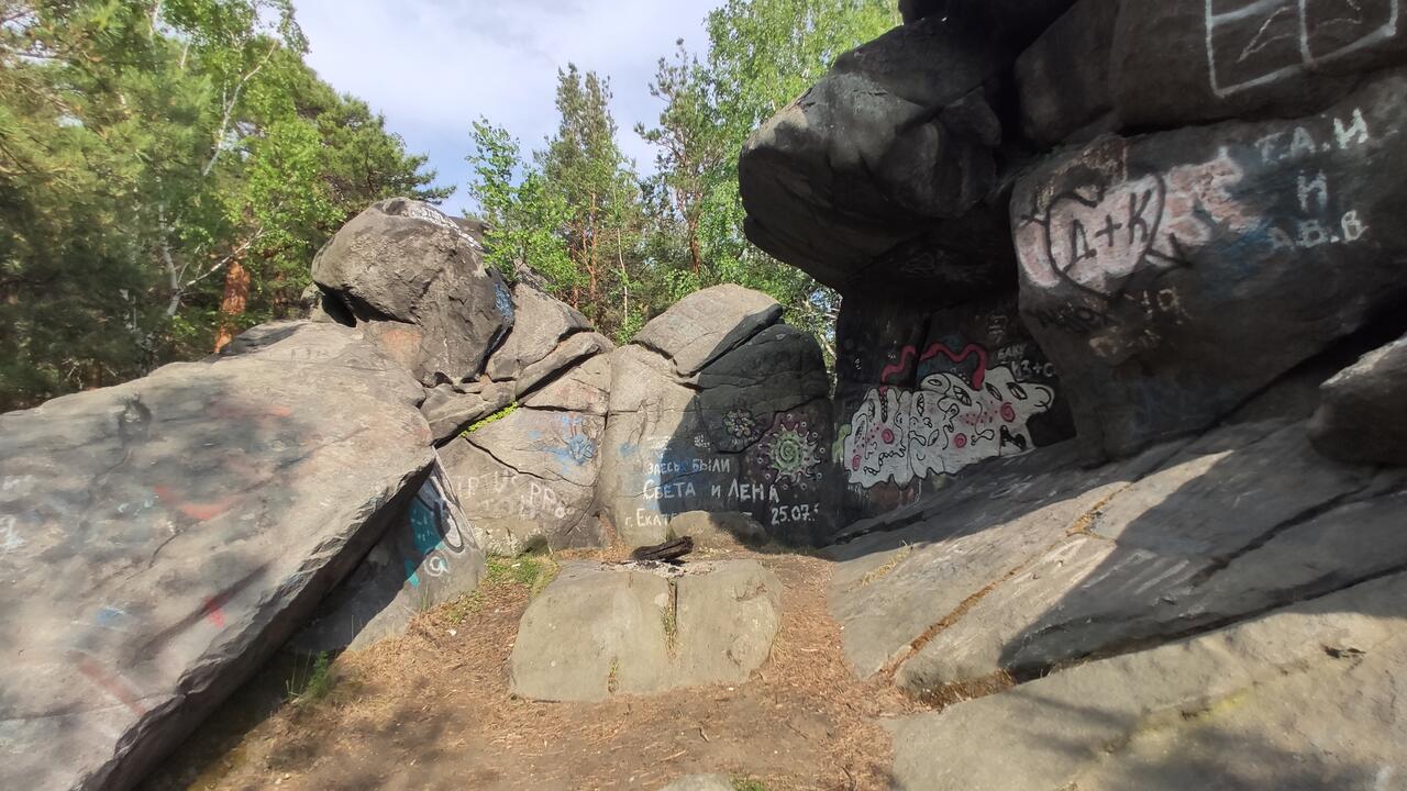 Раньше неподалёку (по другую сторону от железной дороги) находилась ещё одна скальная гряда, но в 1931 году её взорвали для добычи гранитной щебёнки. На месте скал вскоре образовался карьер. Достигнув определённой глубины, были задеты водоносные слои. Карьер стал заполняться водой. Из-за этого в 1962 году производство перенесли в другое место – примерно на километр к северо-востоку, там до сих пор ведётся добыча и образовался большой карьер. На месте же первого карьера образовалось озеро. Летом здесь купаются местные жители, а зимой заготавливают прозрачный лёд для строительства ледового городка в Екатеринбурге.