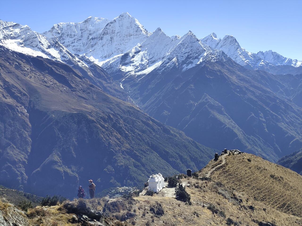 Неподалеку от мемориала, на том же гребне в конце хребта Гонгри, есть смотровая площадка - вот оттуда (при хорошей видимости) обзор отличный на все горы от долины Таме до Ама Даблам. Прекрасно виден и Эверест, и Лходзе и другие пики.