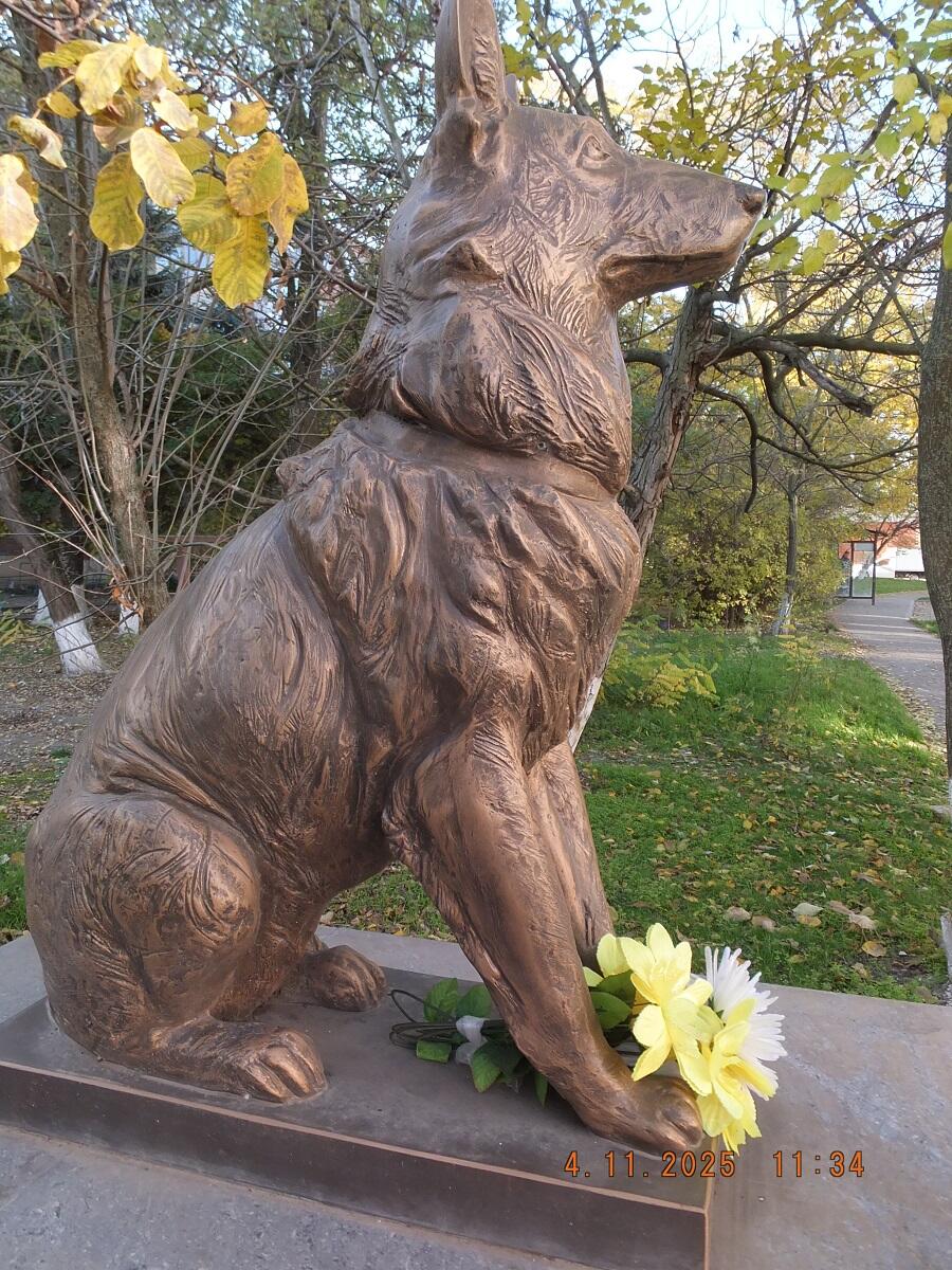 В 2017 году школьники разработали эскизы памятника знаменитой городской собаке. А сейчас небольшой монумент установлен у филиала детской городской библиотеки.