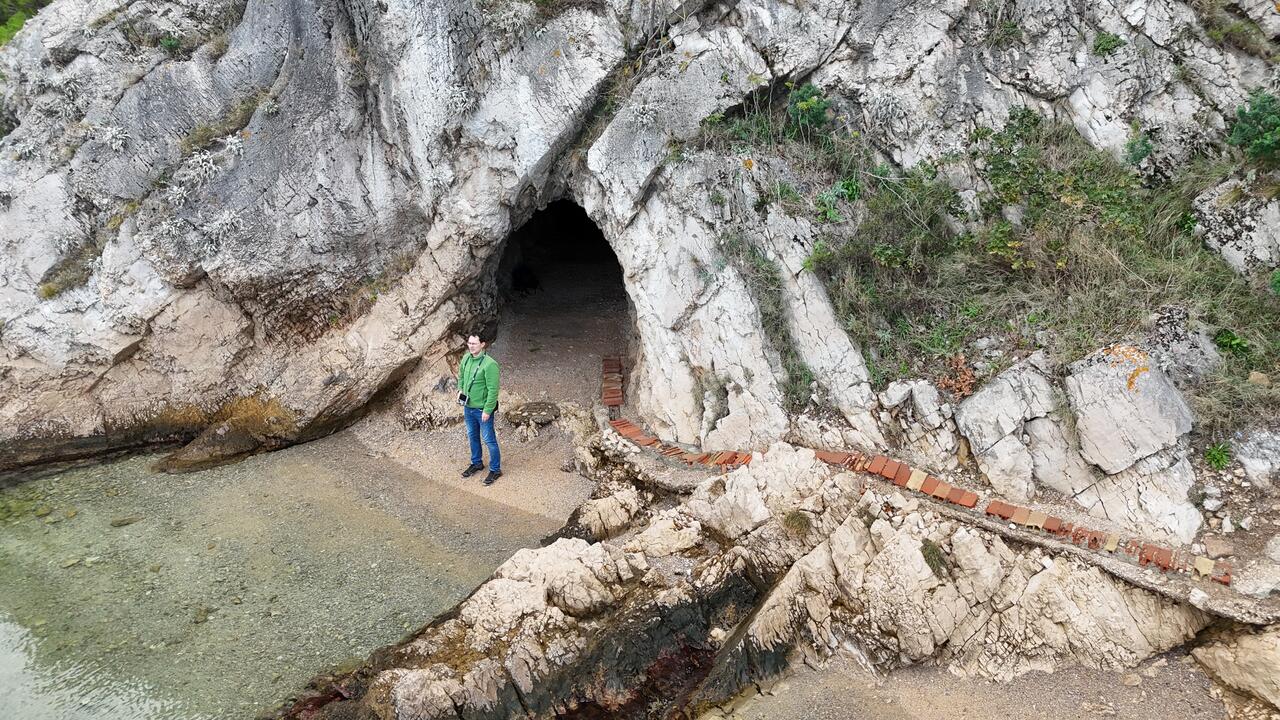 Строительство этого интересного объекта началось еще при немцах в 1944 году. Их быстрые торпедные катера составляли основу балканской флотилии и туннель использовался как укрытие катеров от авиабомб, а также позволяли, во-первых, совершить разворот, не отсвечивая на открытой воде, а во-вторых, обойти минные поля, установленные немцами, для защиты от потенциальной атаки британских кораблей.