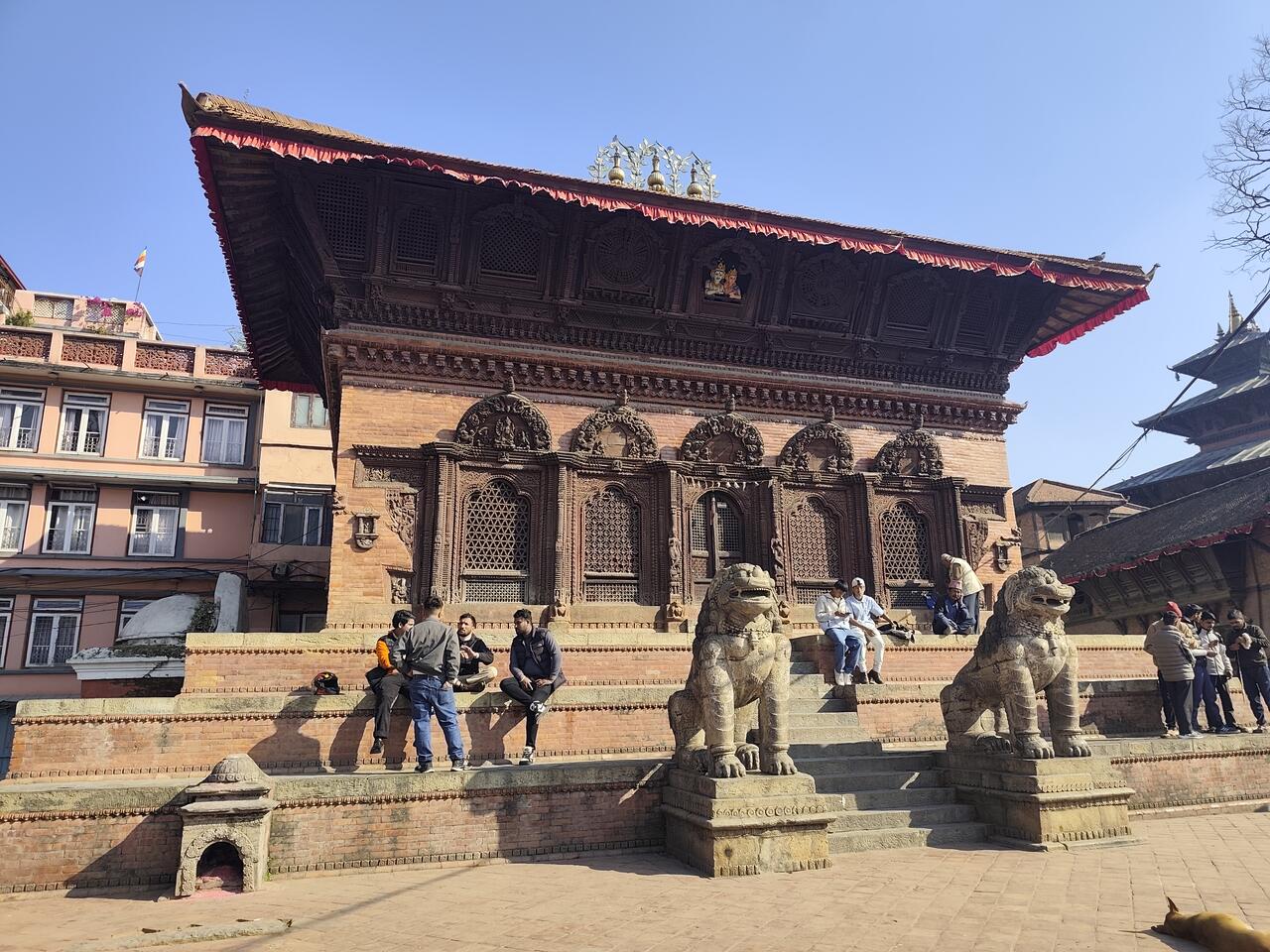 Центральное место на площади занимает величественный дворец Хануман-Дхока, чья история охватывает период с XV по XVIII век. Его многочисленные дворики, изящные колонны, искусные статуи, пагоды и мавзолеи сливаются в единый архитектурный ансамбль. Особое внимание привлекают башни, построенные ремесленниками по углам дворца, самая высокая из которых – башня Базантапур. Поднявшись на ее вершину, открывается захватывающая панорама старого города.