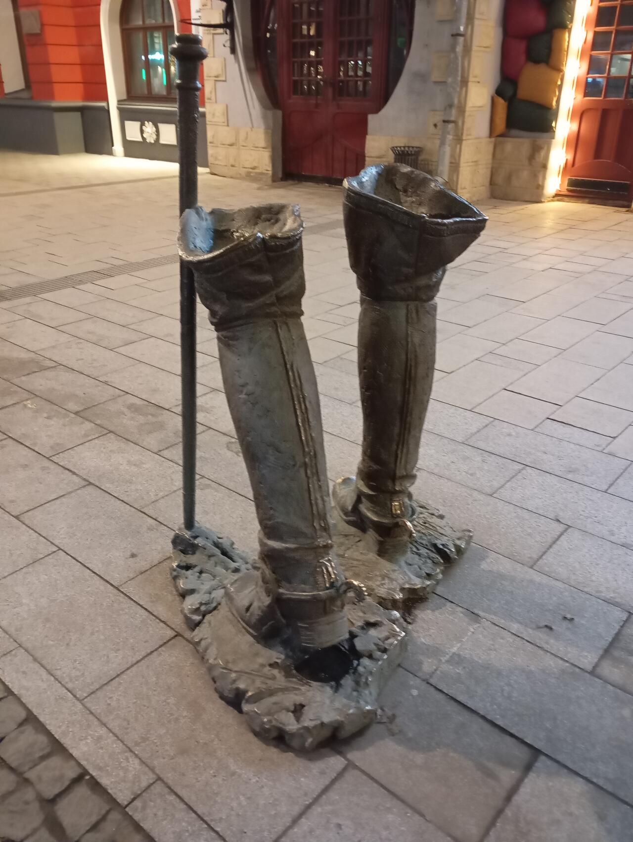 - Сапоги точно не Петра I, размер не его! Да и не бывал он здесь, улица появилась через полвека после его смерти! Больше похоже: человек бежал к автобусной остановке и так торопился, что сапоги потерял!