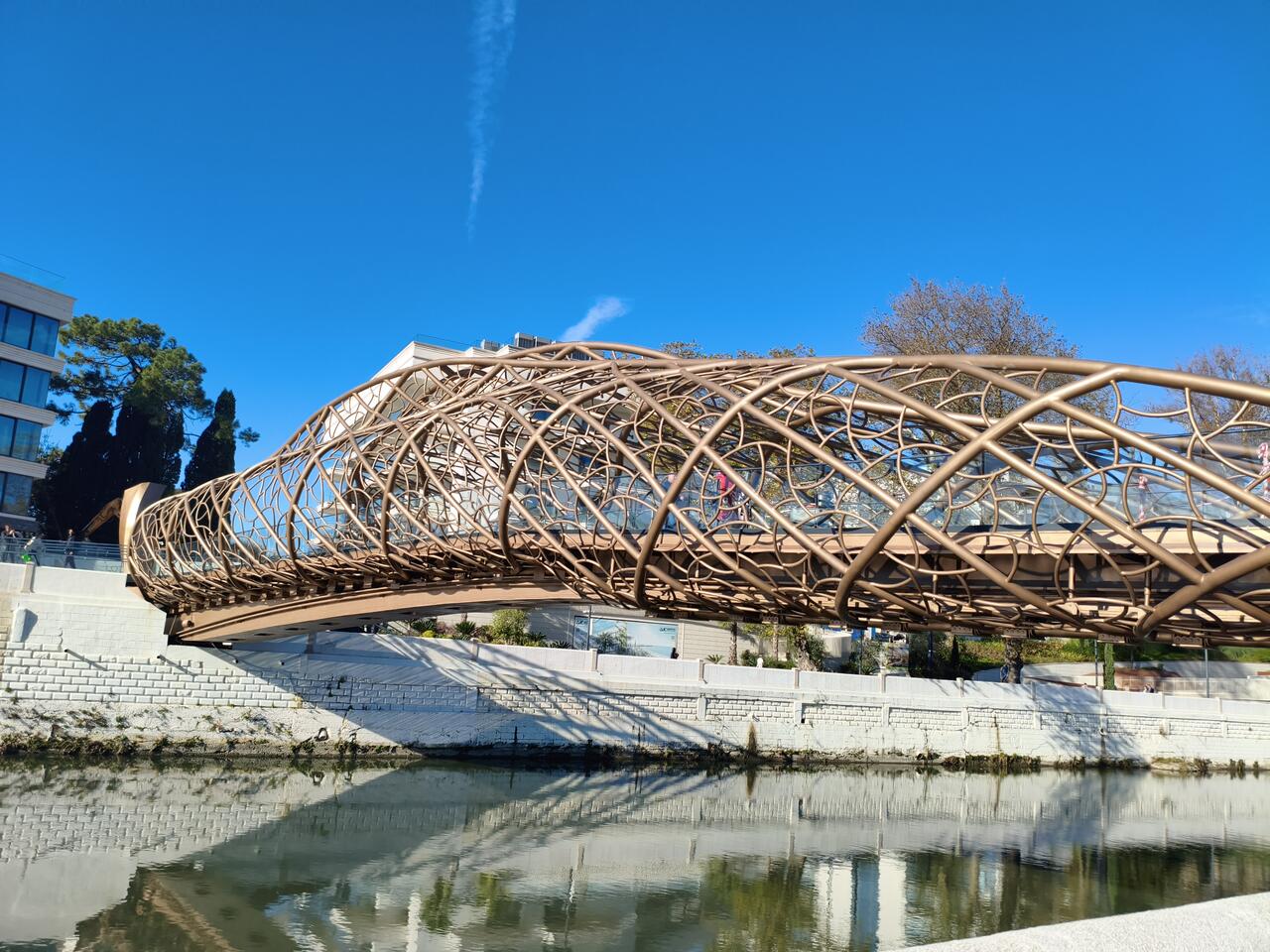 Новый мост объединил две прогулочные набережные у реки Сочи в районе парка «Ривьера». Мост построили с применением экологичных технологий и без вмешательства в русло реки. Новая достопримечательность города-курорта вошла в 15-километровый маршрут «Две реки — одно море». Маршрут соединяет набережные Мацесты и Сочи».