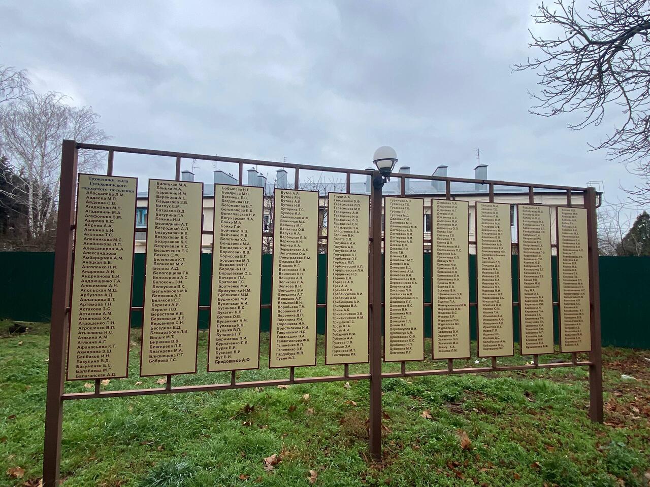 Памятный знак работы скульптора А. А. Аполлонова изготавливается в Краснодарском крае в городе Кропоткин в рамках общероссийского проекта «Аллея Российской Славы». Представляет собой стелу сложной формы с барельефом, изображающим тружеников тыла — женщину и ребёнка за станком. Над фигурами размещена лента с надписью рельефными буквами: «Все для фронта, все для победы». В нижней части монумента надпись: «Потомки благодарны Вам, родные, за то, что Вы выстояли и победили».
