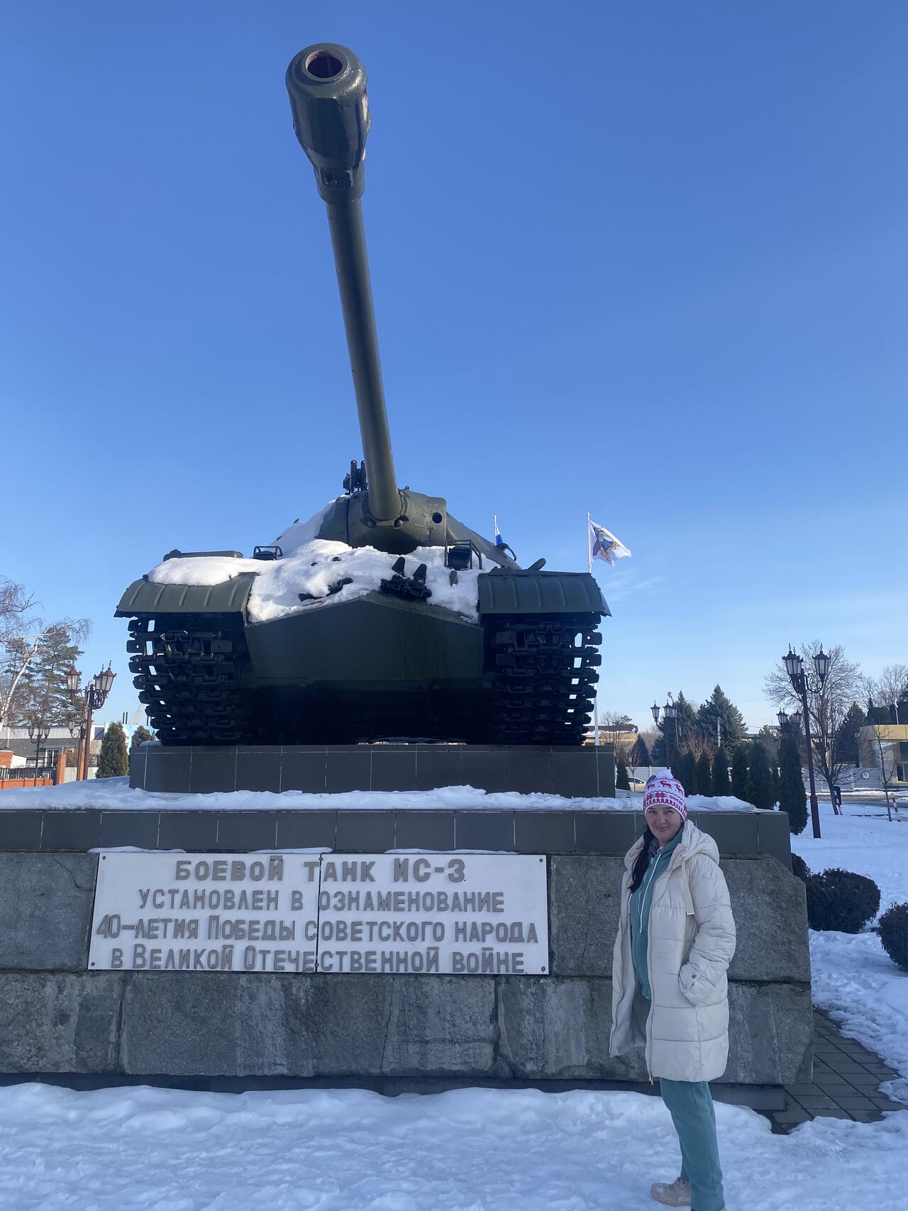 «Боевой танк ИС-3 установлен в ознаменование 40-летия победы советского народа в Великой Отечественной войне.» - гласит табличка на каменном постаменте!