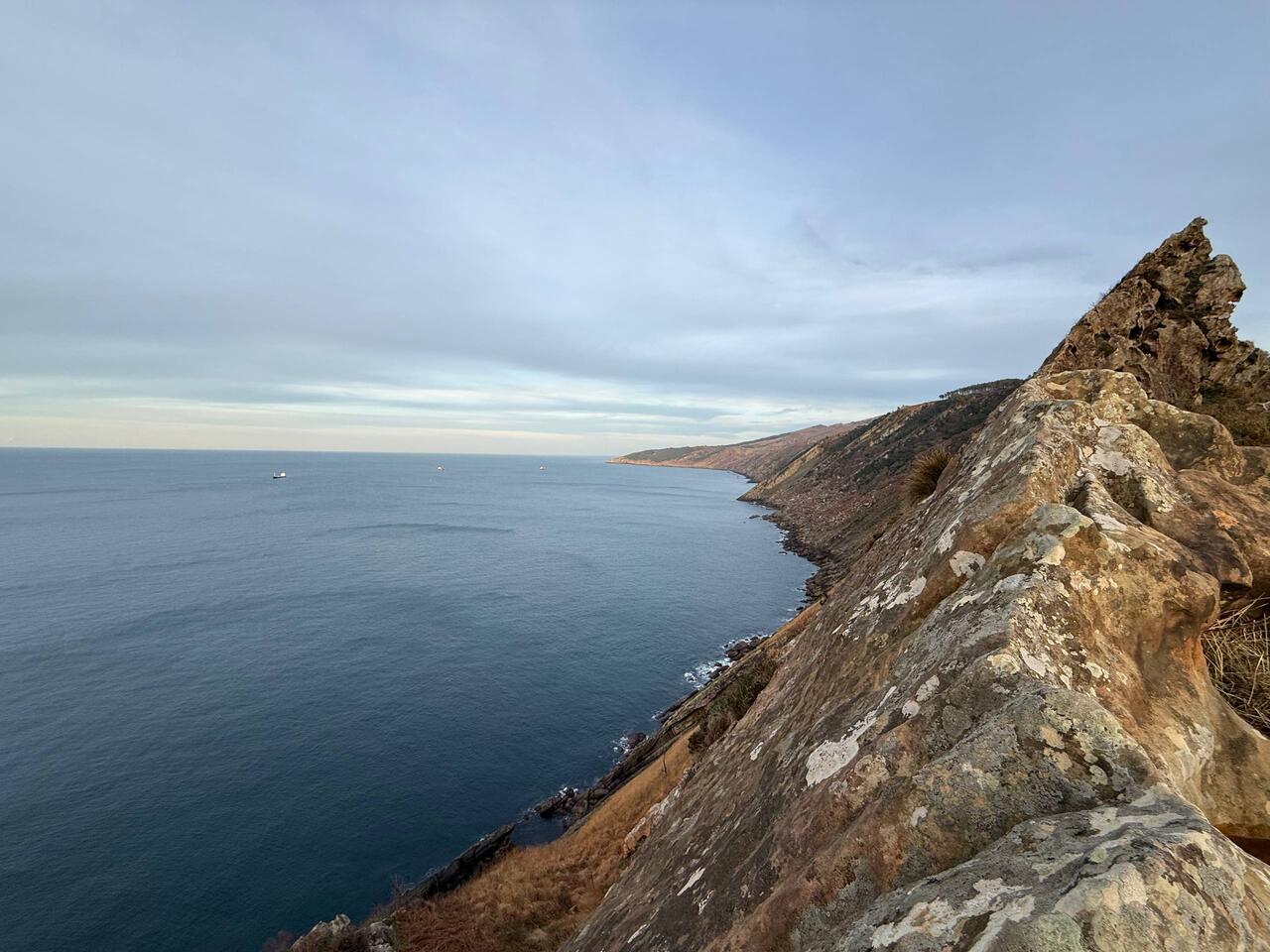 Когда вы заберётесь на самый верх, вас будет ждать великолепный панорамный обзор. С одной стороны узкая и глубокая бухта, каналы и дома между холмами. С другой - открытый океан, скалистое побережье и обрывистые склоны. Здесь особенно красиво встречать закат. Вдоль побережья проходят пешие маршруты по горам и лесу