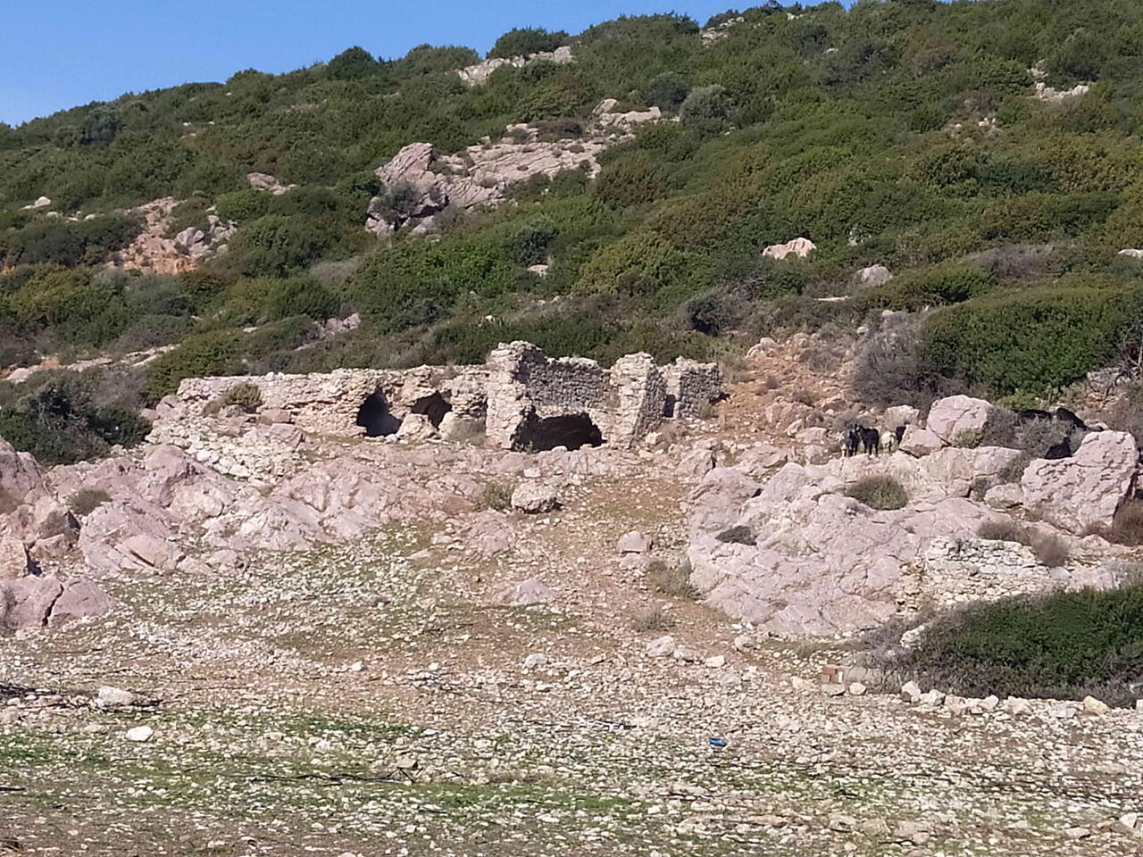 Этот путь проходит через самую «настоящую» Датчу — сухую, ветреную, каменистую. Здесь нет ощущения туристического маршрута: ты идёшь среди миндальных деревьев, скал и низкого кустарника, иногда выходишь к морю, а потом снова поднимаешься вверх. По дороге встречаются остатки карийских и античных построек — обрушенные стены, террасы, фрагменты древних троп, по которым когда-то ходили жители Карии задолго до римлян и византийцев. Эти следы не обозначены табличками, но именно они создают ощущение глубокой, слоистой истории.
