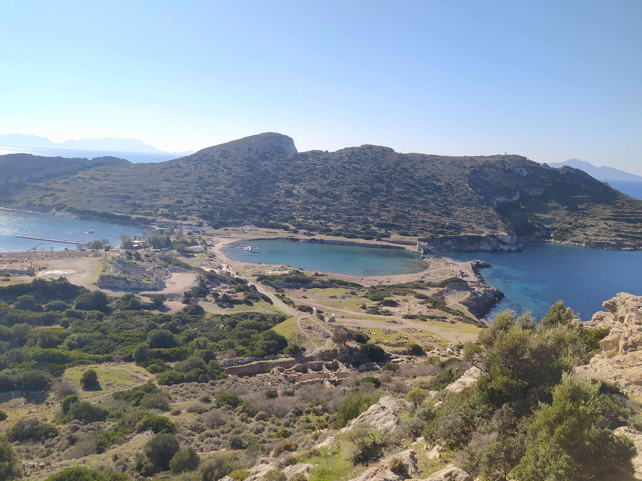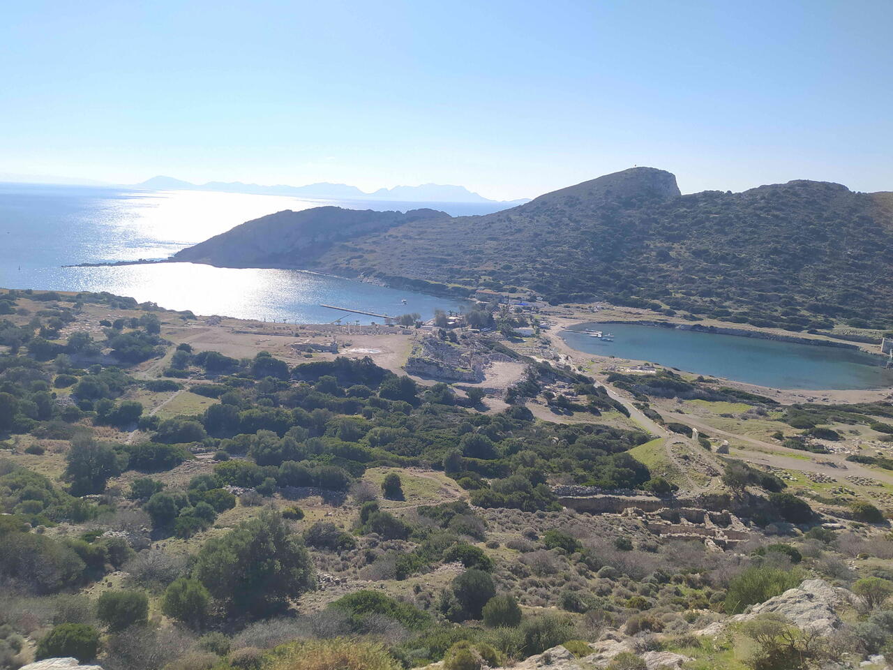 Книдос располагался на узком мысе между морем и скалистыми холмами, что давало ему стратегическое значение и одновременно делало его живописным. С холмов открываются панорамные виды на море и бухты, а по тропам к портам сохранились каменные лестницы и древние дорожки, которыми пользовались жители города.