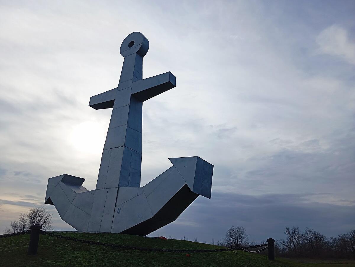 Это самый большой из существующих памятников в виде якоря, подобного ему по величине нет нигде в мире.