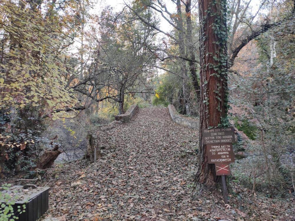 Чтобы дойти до моста, нужно пройти пешком примерно 3 км от заброшенной деревни Vretsia. Дорога проходит через густой лес, где каждая тропинка покрыта листвой, а воздух наполнен ароматом кипариса и дуба. Подходя к мосту, слышишь журчание воды под каменной аркой и понимаешь, что стоишь на месте, где история и природа сплелись в единое целое.