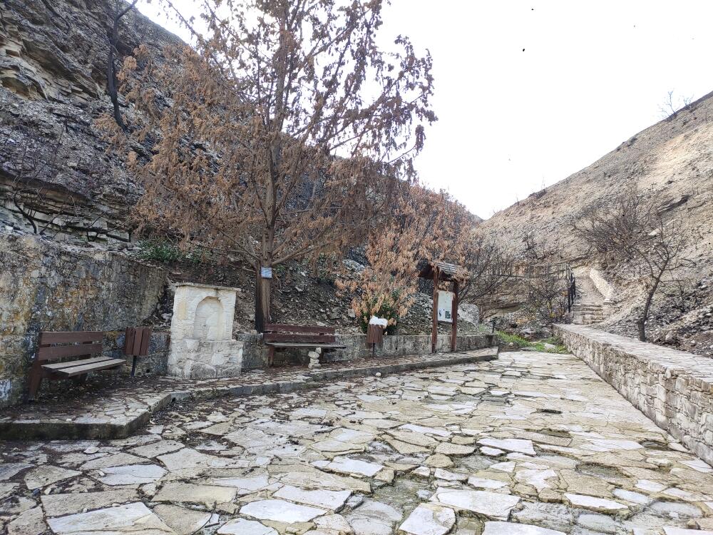 Когда достигаешь фонтана Элитзи, кажется, что весь мир сжался до этого тихого уголка. Вода прохладная, прозрачная, и легко представить, как когда-то жители Лофу приходили сюда за питьём и разговорами. После короткого отдыха можно обойти тропу по кругу и вернуться в деревню — уже с другой стороны, наслаждаясь видами на горные склоны, солнечные террасы виноградников и старинные каменные дома.