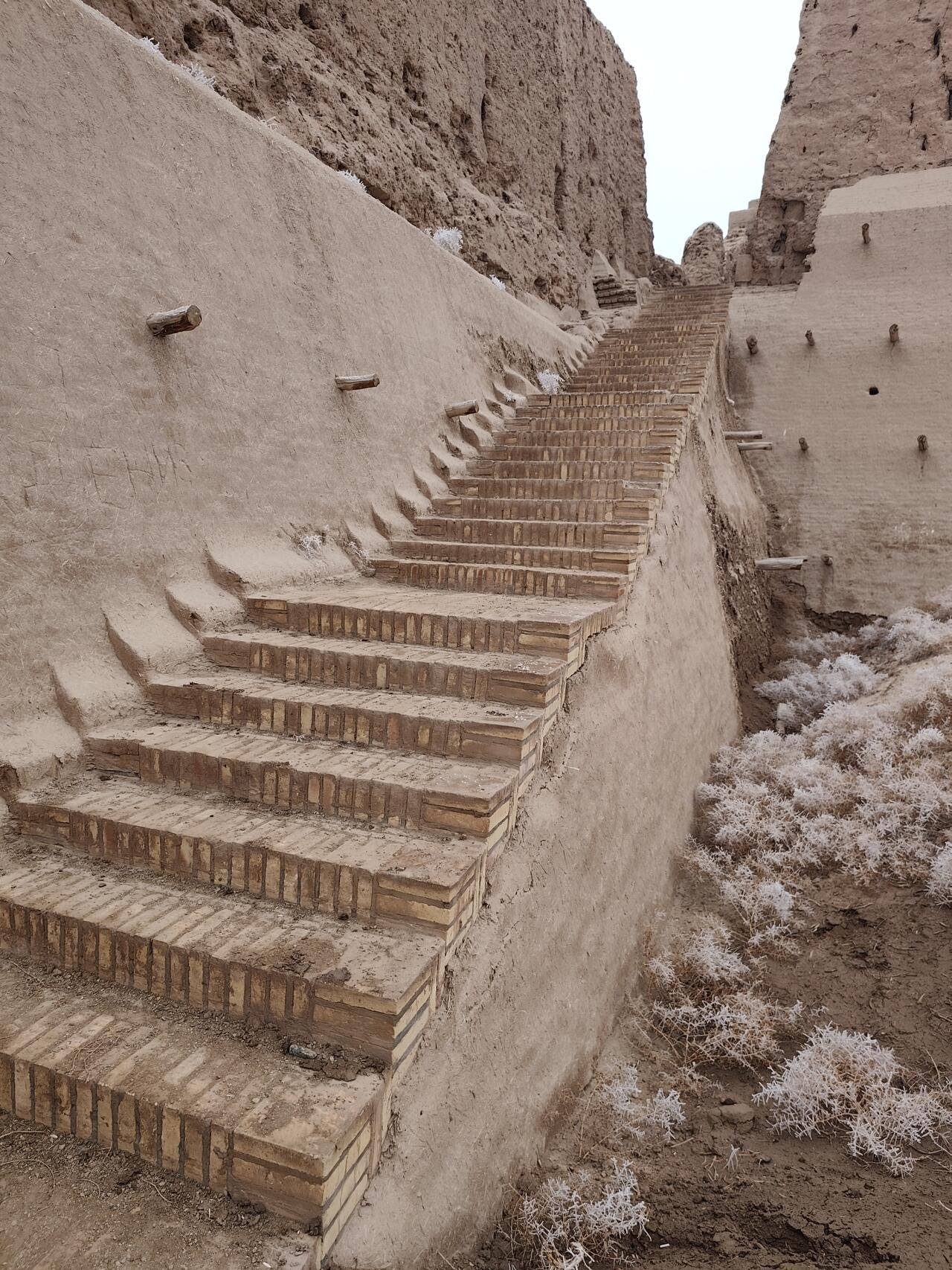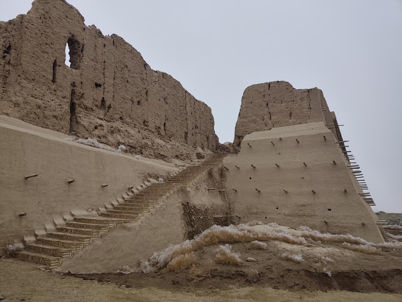 С вершины крепости открывается прекрасный вид: с одной стороны раскинулось извивающееся русло реки, рядом — сеть водных каналов, а с другой стороны горизонта раскинулась бескрайняя пустыня с видом на крепость Топрак кала.