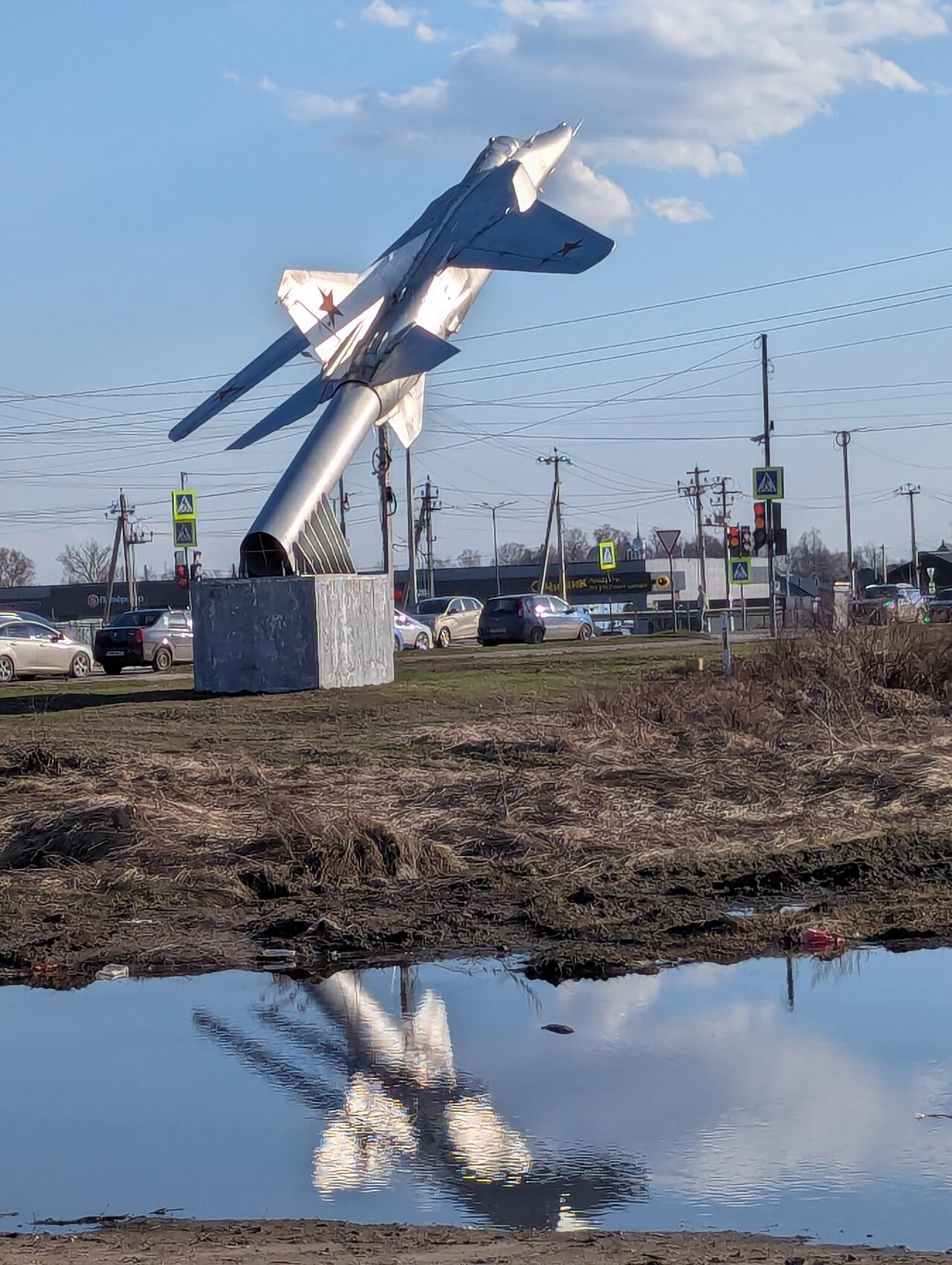 Памятник самолету МиГ-23БК. Установлен 1 июня 2016 года на въезде в пос. Белоозёрский к 55-летию поселка. Это прототип серийного самолета МиГ-27К.