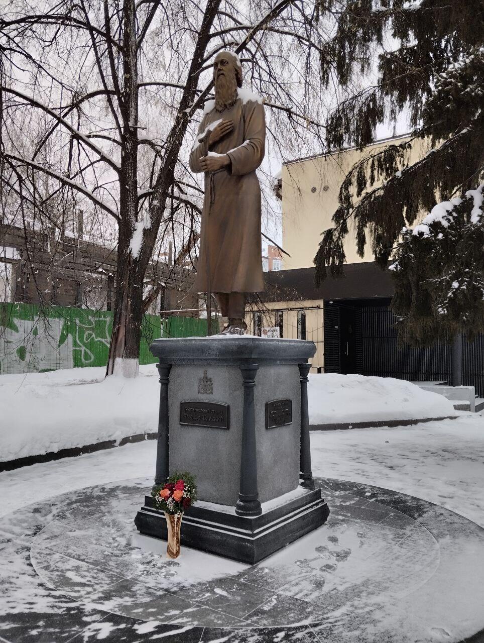 А 5 июля 2024 года, в день памяти Феодора Томского, на пересечении проспекта Фрунзе с улицей Крылова, вблизи Богородице-Алексиевского монастыря, где Федор Кузьмич провел свои последние дни, был открыт памятник святому старцу.