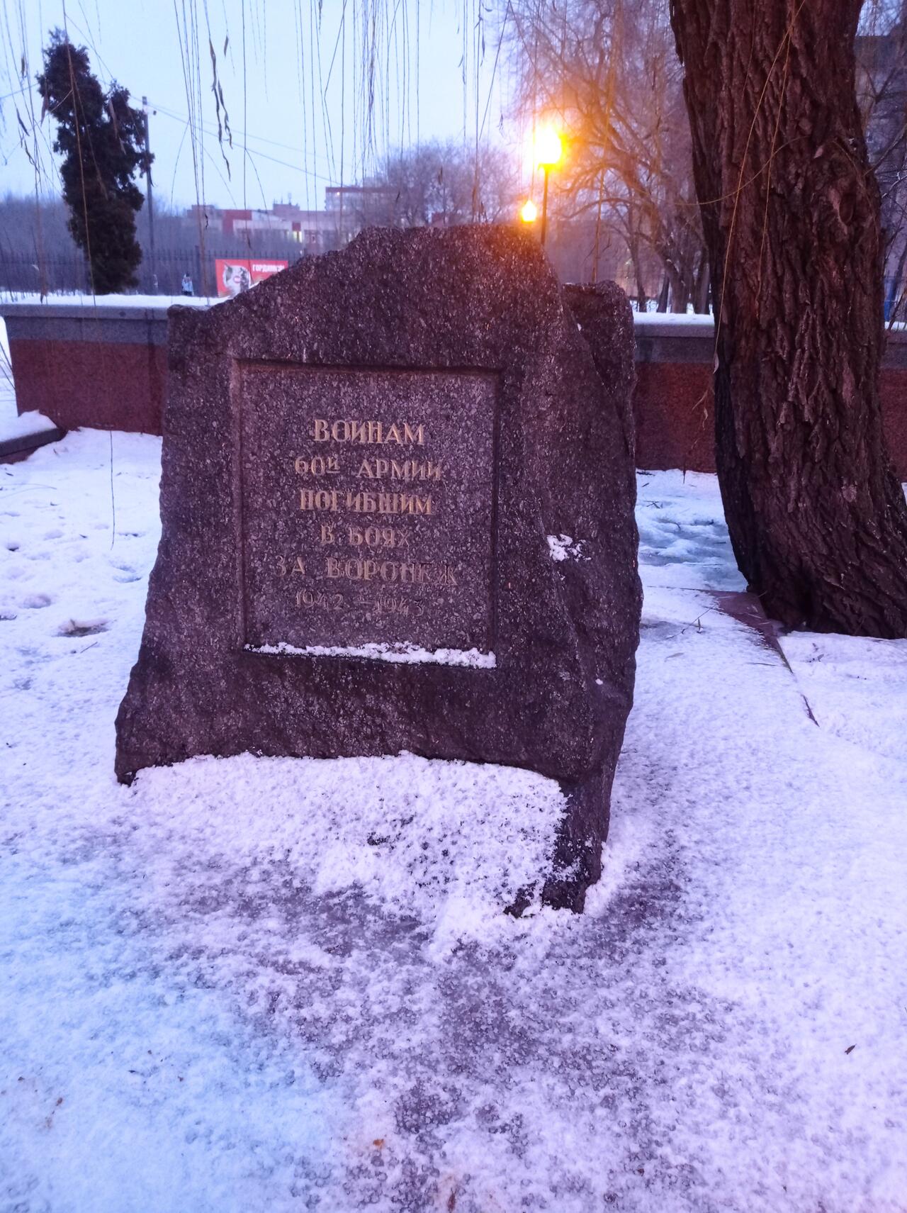 Это знаковое место для Воронежа. 212 дней шли бои за Воронеж, но фашисты так и не смогли взять город. По накалу уличных боёв битва за Воронеж не уступала Сталинградской битве. Семь месяцев — с 7 июля 1942 года по 25 января 1943 года — на улицах Воронежа не стихали выстрелы. Это дольше, чем длилась Сталинградская битва в её классическом понимании. Город был разрезан пополам линией фронта: левый берег в руках советских войск, правый — оккупирован немецкими и венгерскими частями. . Одной из таких значительных и памятных вех на пути к коренному перелому и Великой Победе была Воронежско-Касторненская наступательная операция. Заметный вклад в разгром немецких и венгерских войск под Воронежем в январе 1943 г. внесла 60-я армия И. Д. Черняховского. Подробнее можно почитать здесь
