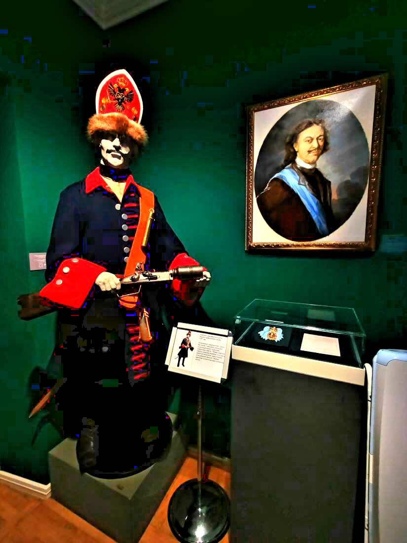Помимо военной формы в музее представлено множество исторических артефактов разных эпох – указы, книги, оружие, погоны, воинские награды, знаки отличия, кокарды, пуговицы, плакаты и много всего другого. Например, вы сможете ознакомиться с письмом Петра I жене Екатерине о победе под Полтавой (факсимиле).
