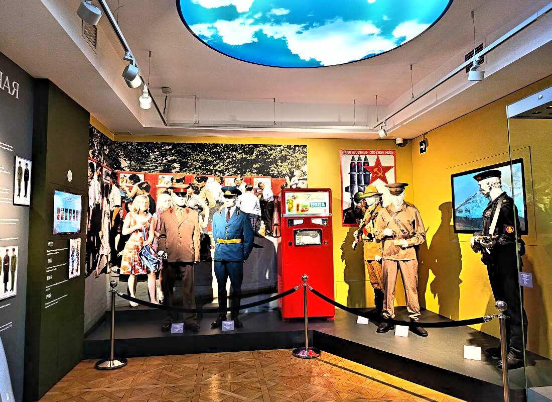 Постоянная экспозиция музея огромна! Она располагается в 22 залах! В них представлены образцы военной формы разных исторических эпох, начиная от Петра I и заканчивая экипировкой солдата будущего. Здесь есть уникальные, подлинные экземпляры формы, принадлежавшие императорам, первым лицам нашего государства, прославленным полководцам. Есть также и большое количество тщательнейшим образом воссозданных, абсолютно точных копий (реплик) военной одежды разных периодов. Её специально сделали доступной, чтобы можно было потрогать, рассмотреть поближе, а в определённых случаях даже примерить, и сфотографироваться.
