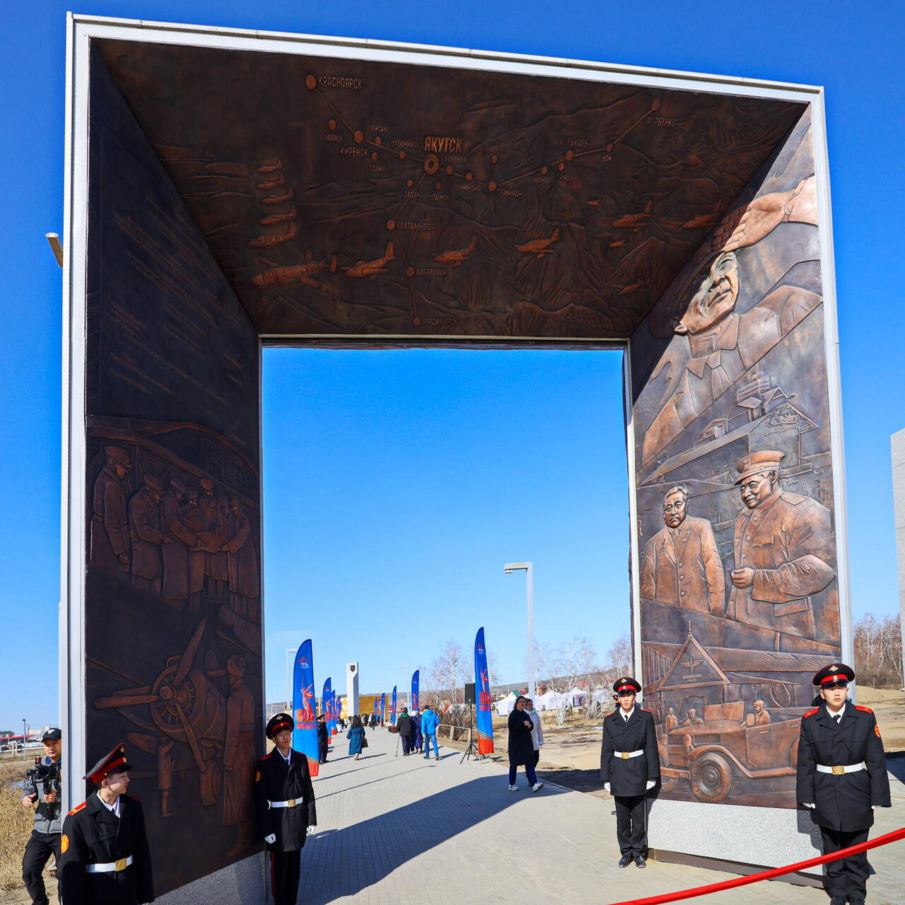 Входная арка «Якутск – город трудовой доблести» была торжественно открыта на территории Парка Победы 7 мая 2025 года. На ней – бронзовые изображения важных исторических событий. Особое место здесь занимает маршрут трассы Аляска – Сибирь. Приказ о присвоении городу почётного звания разместили на стеле в честь 75-летия Победы в Великой Отечественной войне. Праздничную атмосферу поддержал фестиваль «О Родине, о мужестве, о славе», в котором выступили школьники и взрослые. Главной темой мероприятия стало сохранение исторической памяти. После торжественных мероприятий участники церемонии возложили цветы в память о воинах-якутянах, отдавших свои жизни за свободу и независимость страны. В знак уважения была объявлена минута молчания.