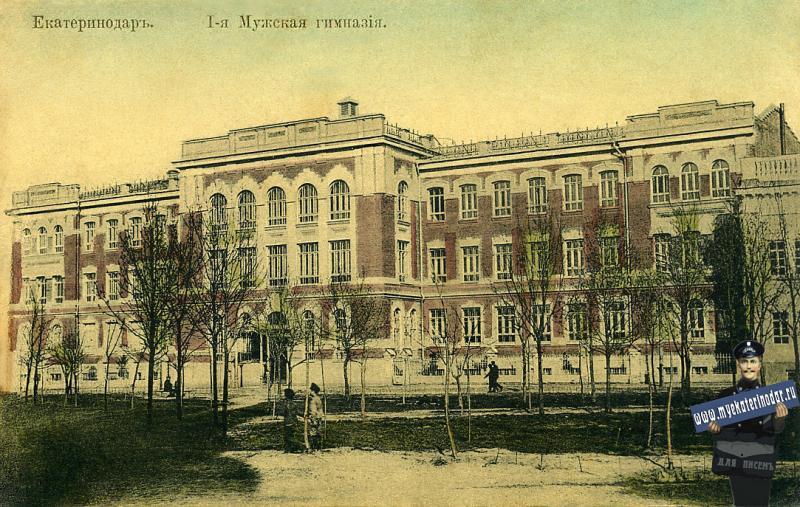 Однако вернемся к мужской гимназии. На лучший проект здания был объявлен конкурс, на который откликнулось общество гражданских инженеров из Петербурга. Из присланных ими проектов «Комиссия по строительству мужской гимназии» остановилось на двух, предложив думе выбрать один из них (авторы в этой информации не были указаны) и немедленно начинать строительство. Торжественная закладка здания мужской гимназии состоялась 1 июня 1904 года. Сметная стоимость была определена в 250 тысяч рублей, а в наличии было в три раза меньше, но решили начинать. Помогло ссудой и войско. В процессе строительства в здании, вдруг обрушился потолок, и исследование причин аварии несколько задержало срок его окончания. Тем не менее, построено оно было всего за полтора года, и 10 января 1906 года состоялось его торжественное освящение. Впоследствии это была первая мужская гимназия имени бывшего городского головы В. С. Климова, который в бытность своего управления городом сделал много полезных дел и оставил у екатеринодарцев о себе добрую память.