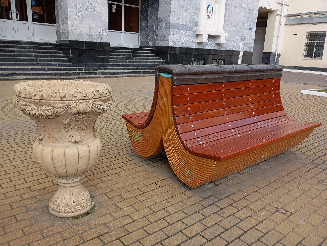 Фолиантом оказалась оригинальная, массивная, стильно тематически выполненная скамья у входа в вышеупомянутый корпус воронежского университета. Объект сразу «запал» с геочервячком, остальное было делом времени и гео чего-то там! ))